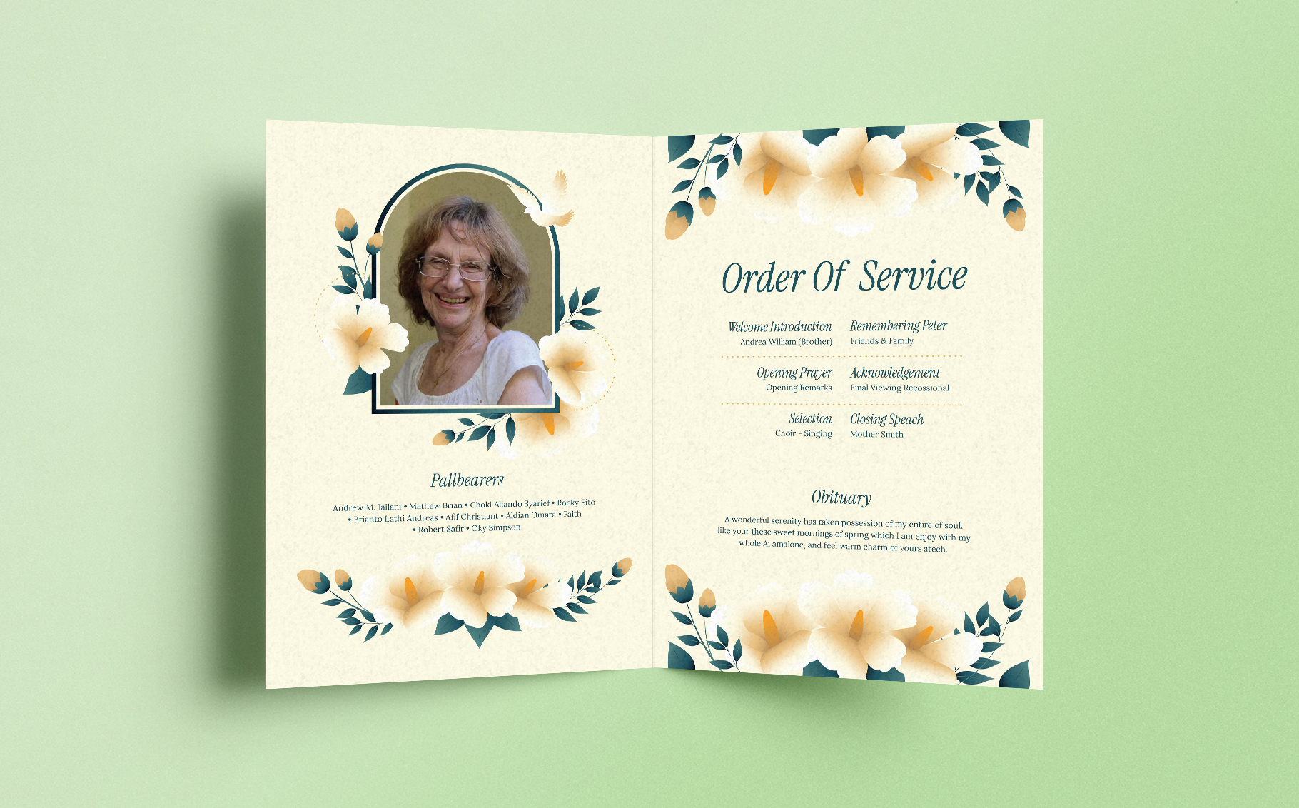 Funeral program is a printed brochure to show the details about funeral or memorial service. Usually it helps attendant know better about the event.