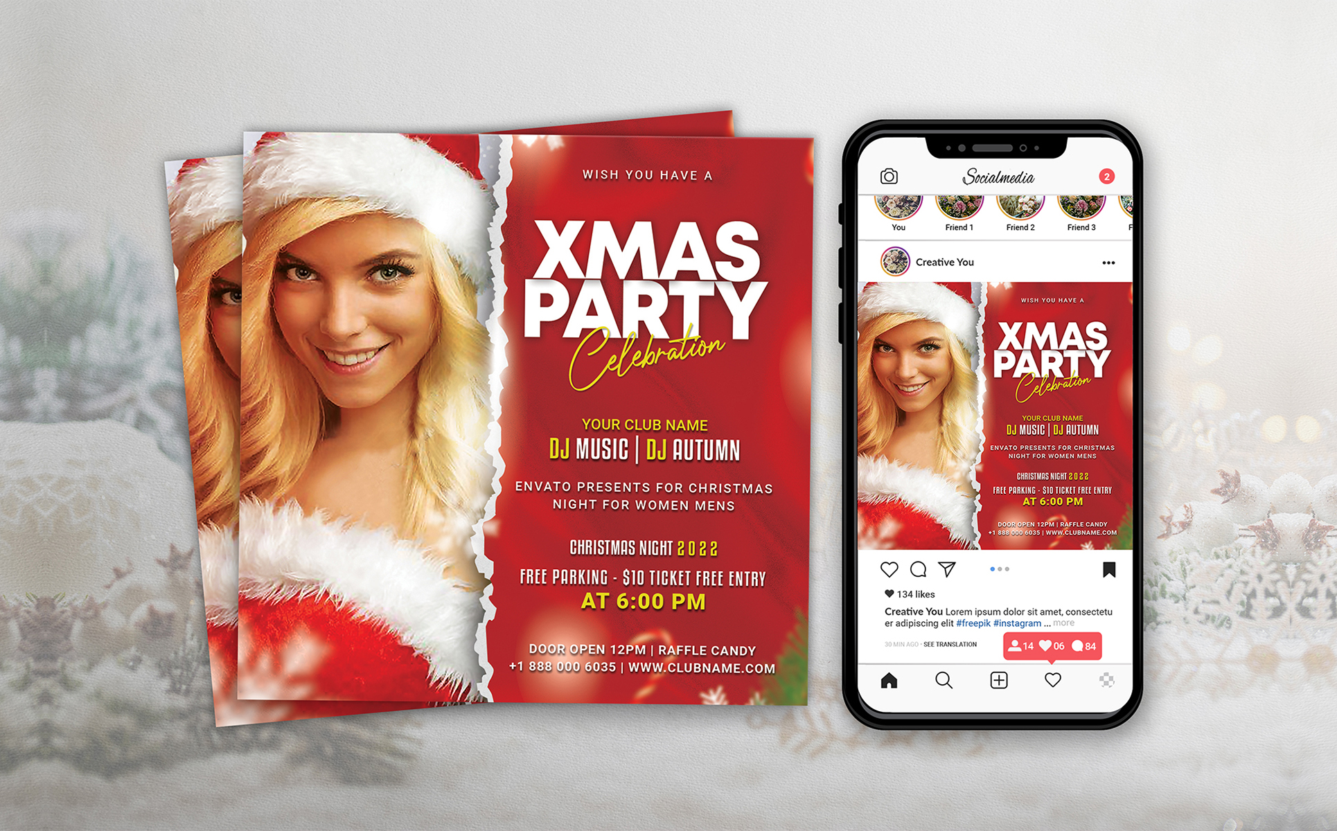 Christmas Party Flyer Template PSD. Fully customizable party flyer template for Photoshop. Easy to use and fully customizable. Buy this template now and start using it. Shorten your working time.