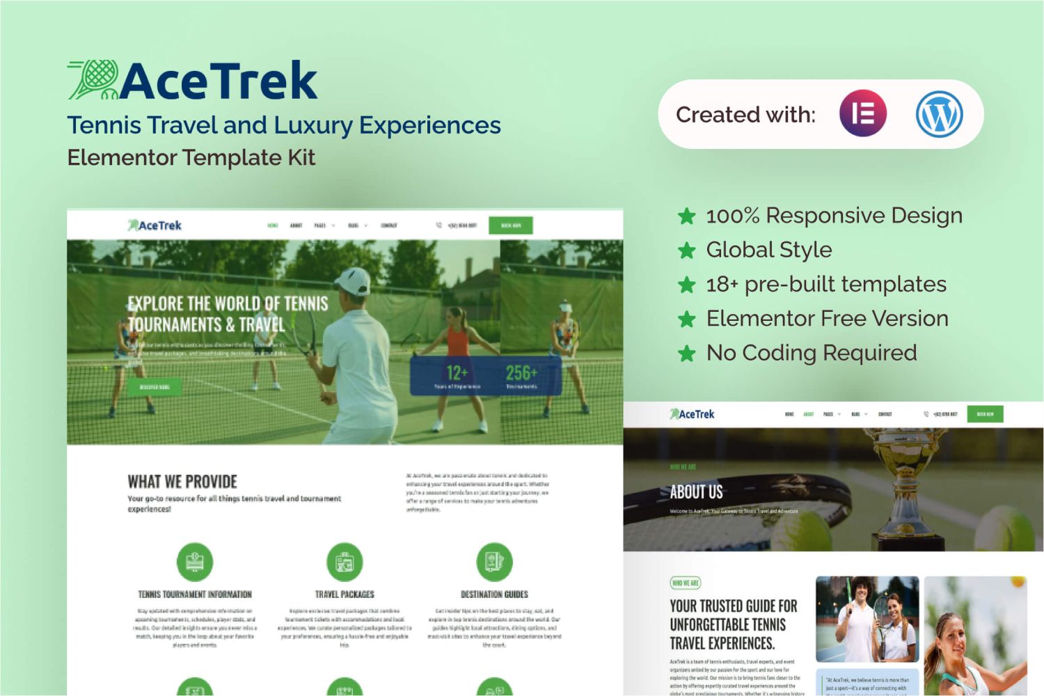 Acetrek - Tennis Travel and Luxury Experiences Elementor Template Kit Elementor Kit