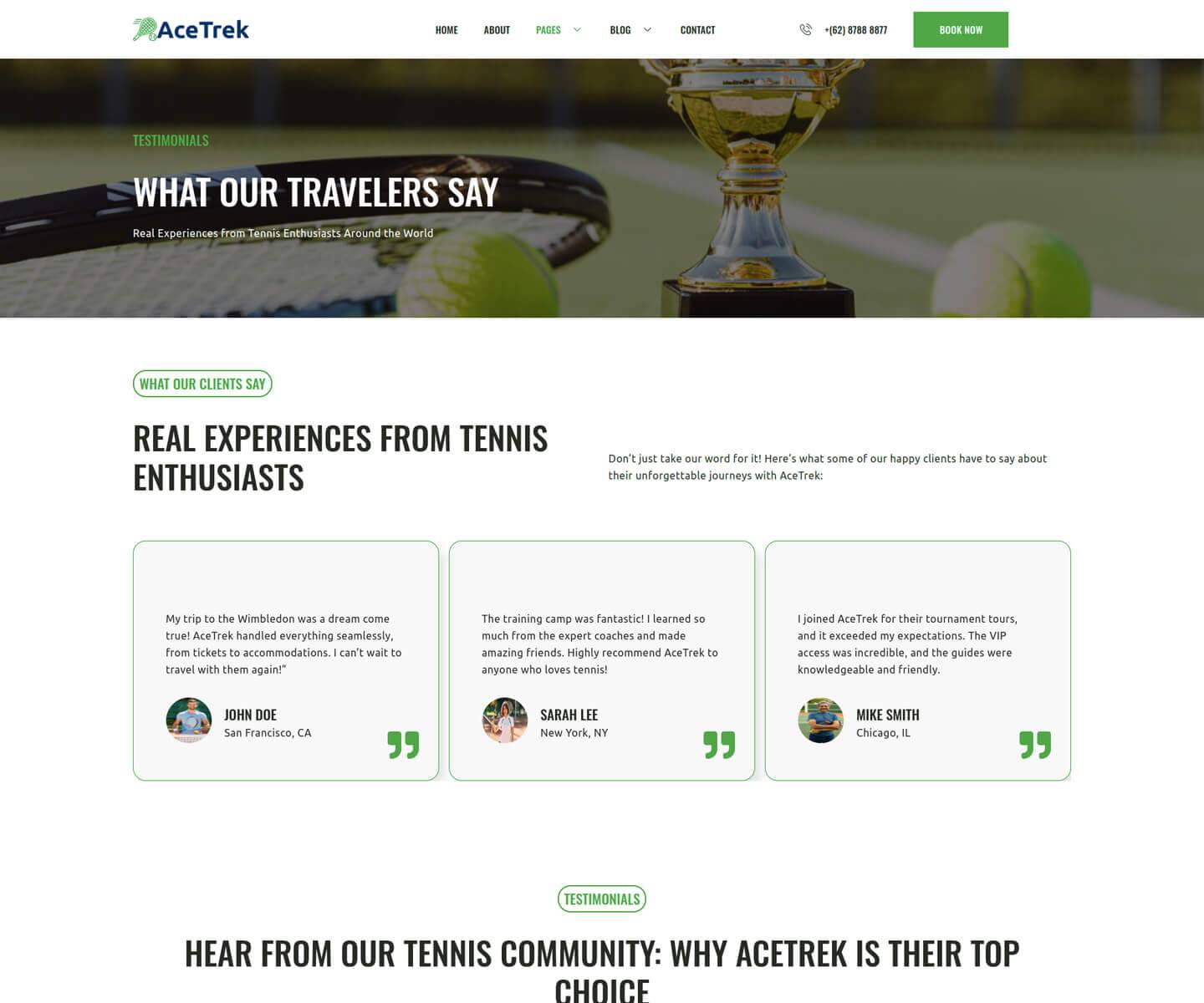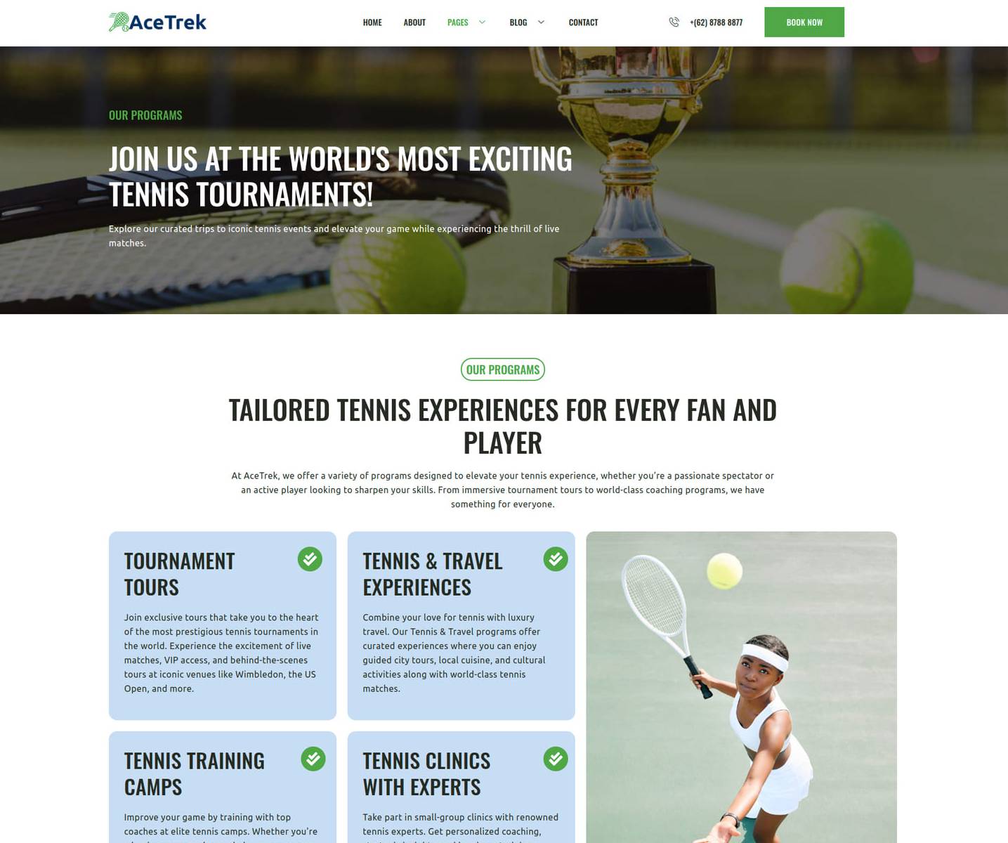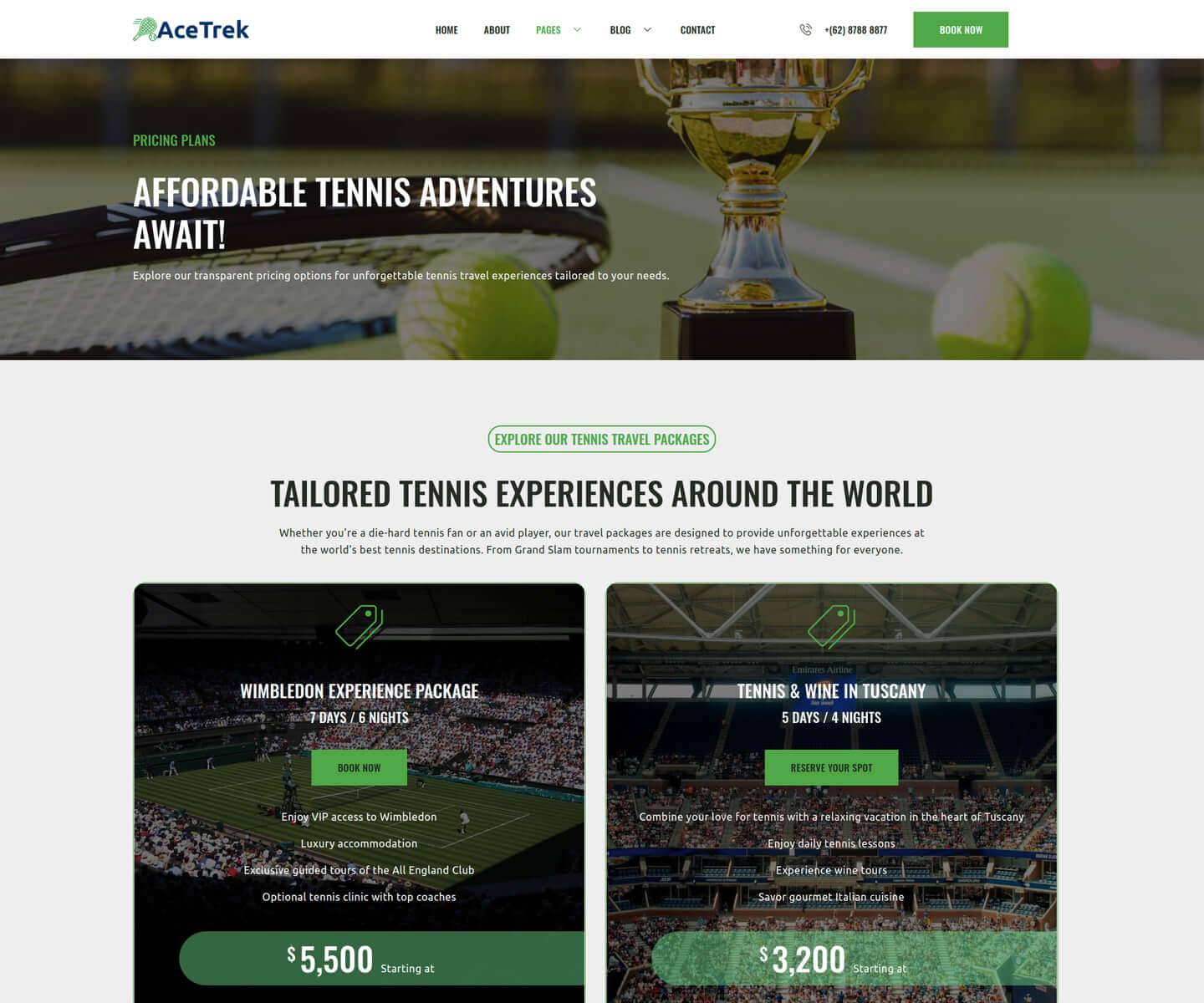 Acetrek - Tennis Travel and Luxury Experiences Elementor Template Kit