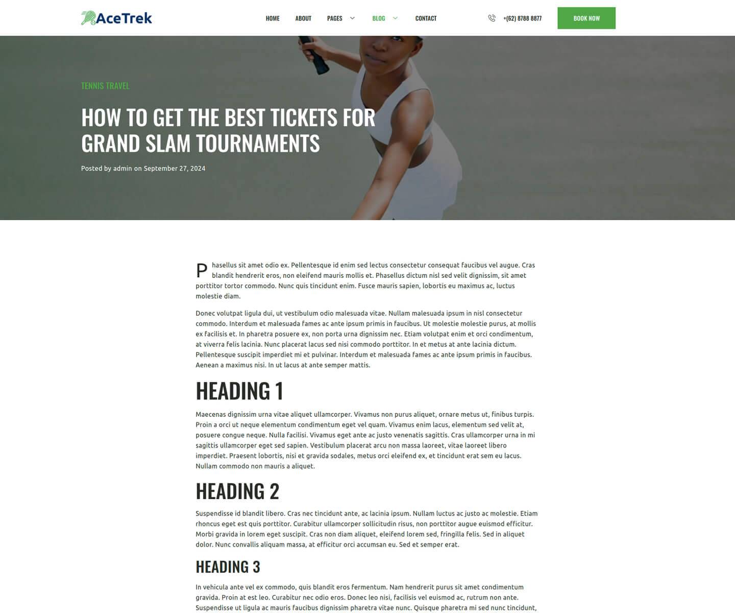 In addition, the AceTrek Elementor Template offers a sleek, modern design for those who want to build their own tennis or travel-themed website with ease. This free template, available for Elementor users, features a fully responsive layout, customizable sections, and seamless integration for creating beautiful, functional websites without coding knowledge. It’s the perfect starting point for travel agencies, tennis academies, or sports enthusiasts to showcase their offerings and engage their audience.