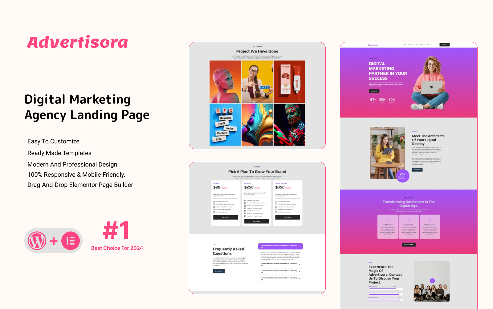Advertisora - Adevertising Agency Landing Page Elementor Template Kit Elementor Kit