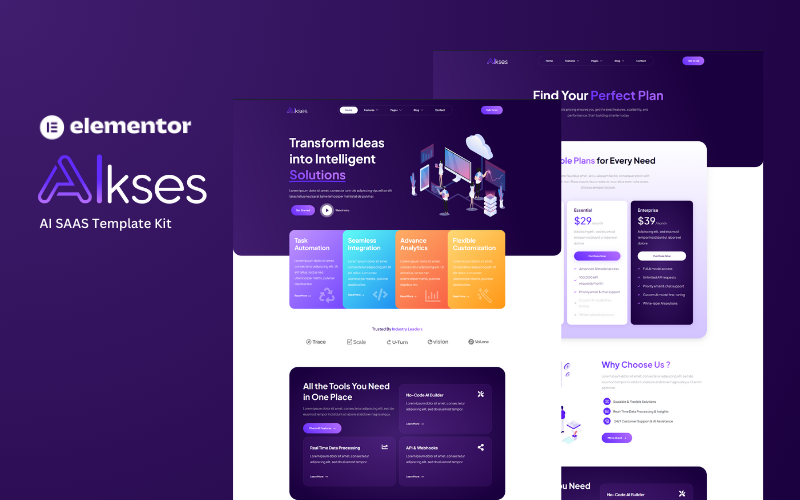 AIkses is a sleek and contemporary Elementor Template Kit crafted for startups and businesses in the AI, SaaS, and tech sectors. Whether you're building a platform for digital tools, smart applications, or innovative tech solutions, AIkses gives you the flexibility to launch a stunning WordPress site—no coding required.