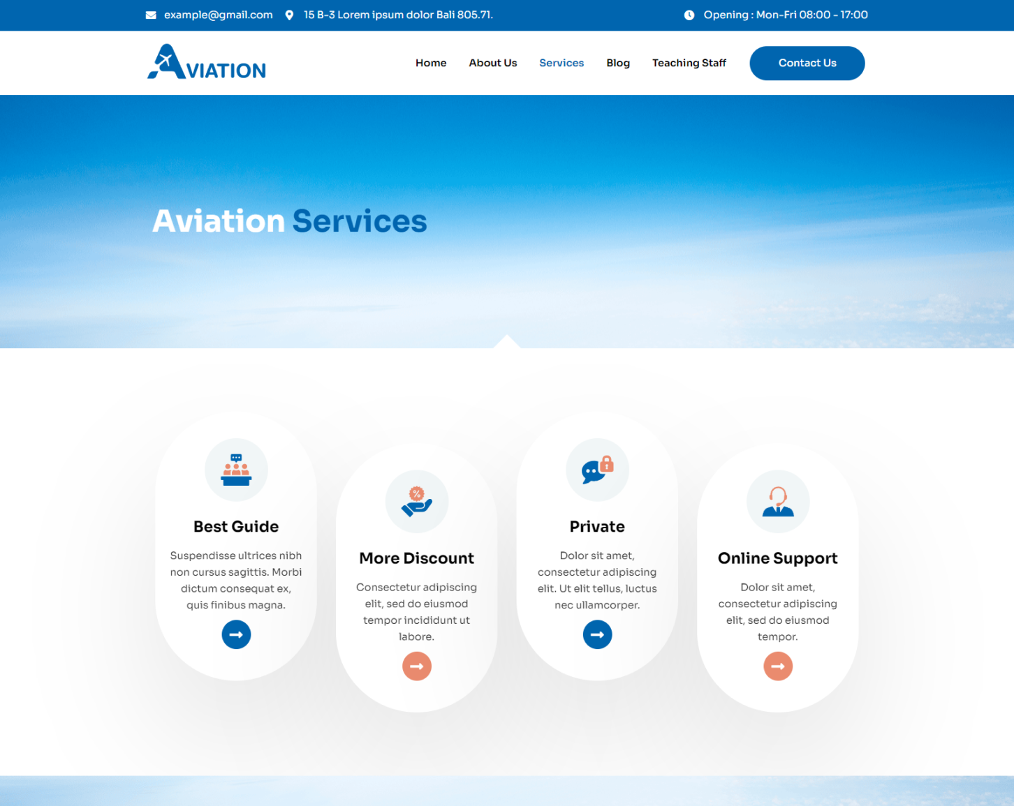 Aviation - Flight Training School Elementor Template Kit is excellent for aviation services and flight training schools. It has a creative and modern homepage design with seven or more inner pages, including a blog single page and an archive page. Your aviation training school's website can be easily created with just one click to meet your needs.