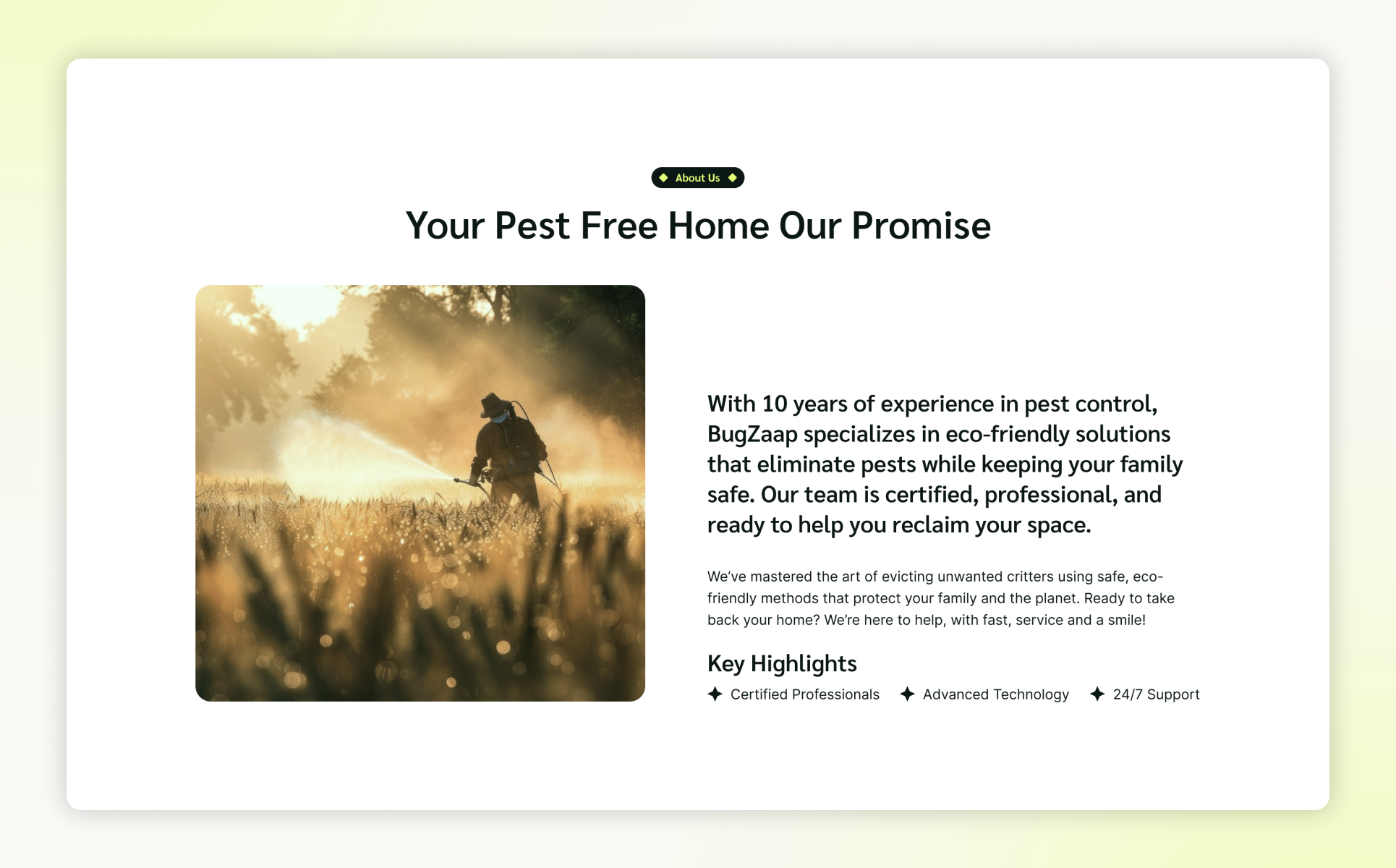 Whether you're starting a new pest control business or upgrading your existing site, Bugzaap provides the professional online presence you need to stand out from competitors and attract new customers.