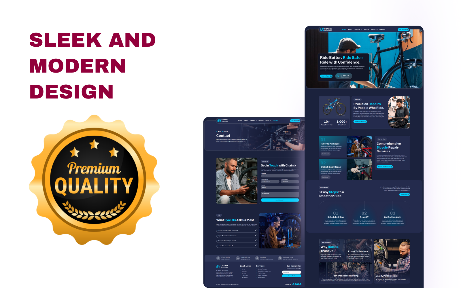 Build a fast, modern website with Chainix and help customers find and trust your bicycle repair services—right from their phones or laptops.