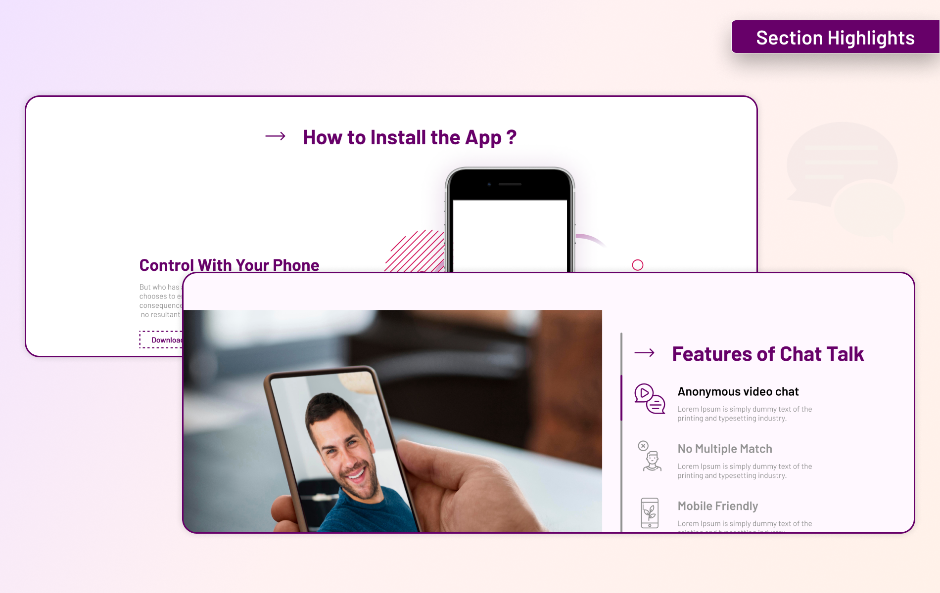 Chattalk shatters design norms, introducing a dynamic visual language that not only catches the eye but also propels user engagement. The fusion of vibrant color schemes and a fluid layout gives your landing page an avant-garde appeal, setting the stage for an immersive exploration of your chat application.