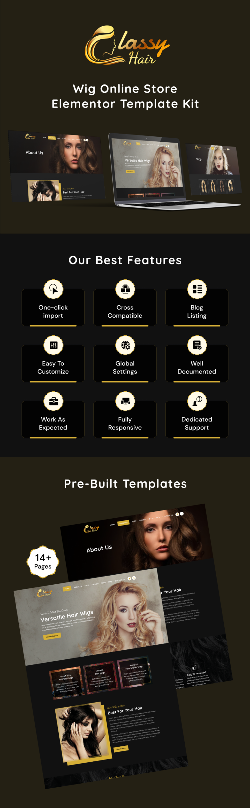 Classy Hair - Wig Online Store Elementor Template Kit Elementor Kit