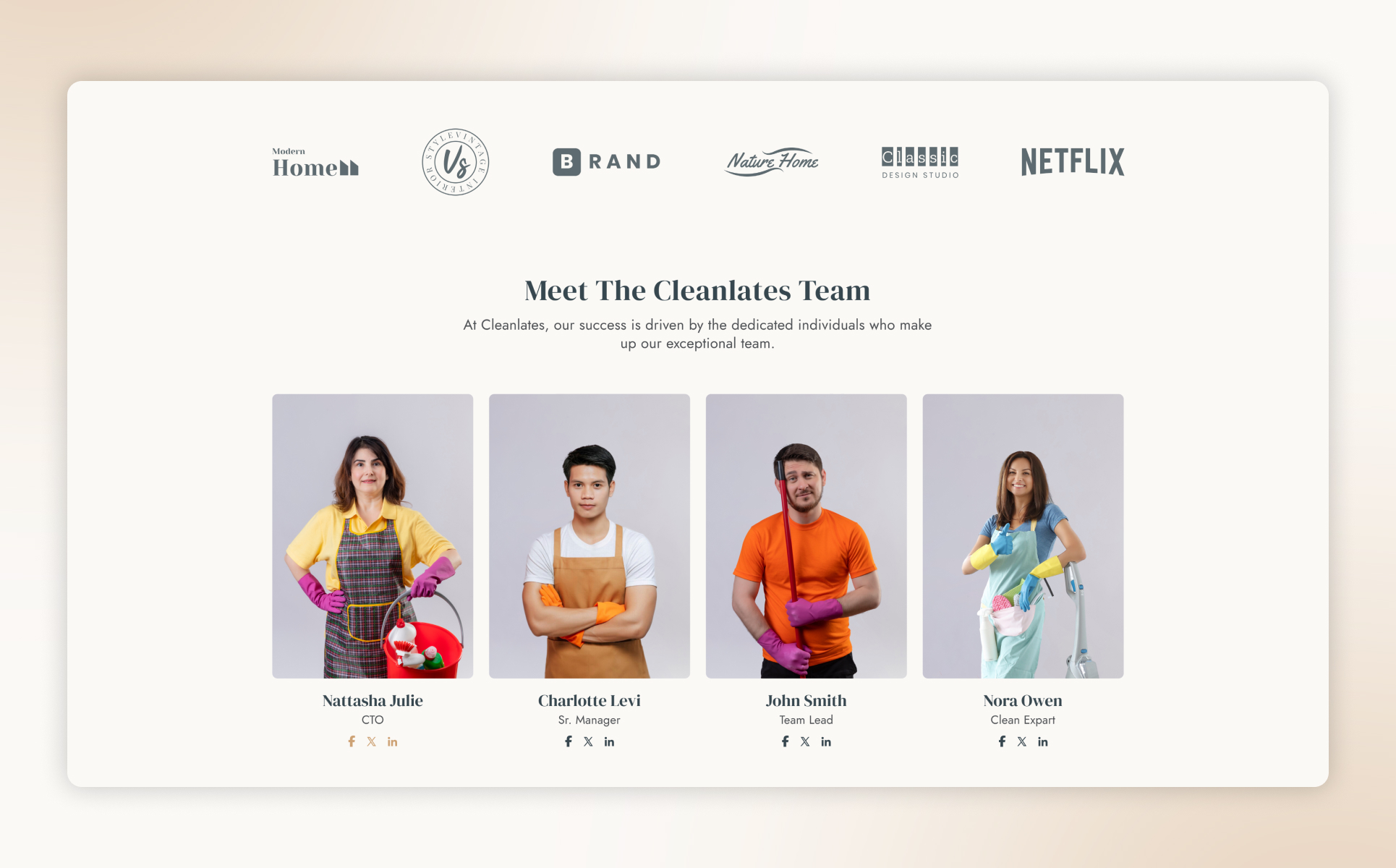 This template features a modern, structured layout that clearly and confidently highlights your services, pricing, team, and testimonials. Whether you offer residential or commercial cleaning, Cleanlates allows you to present your business in a professional and trustworthy manner.