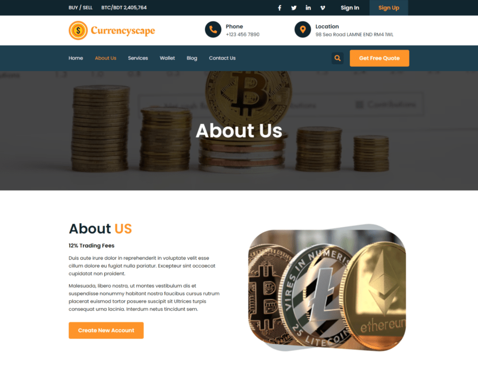 Currencyscape - Digital Currency and Bitcoins Elementor Template Kit Elementor Kit