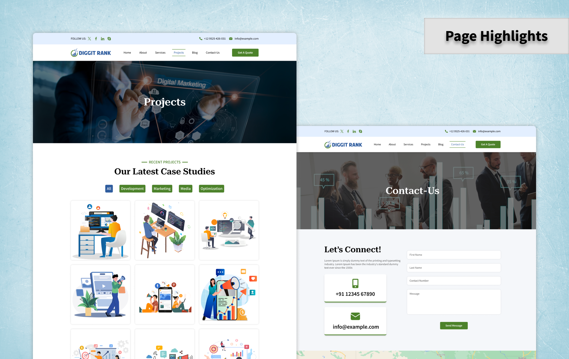 6. Dynamic Content Modules: Elevate your content game with an array of dynamic modules. Showcase your services, spotlight your success stories, and captivate your audience with visually stunning displays – all effortlessly managed through Diggitrank.