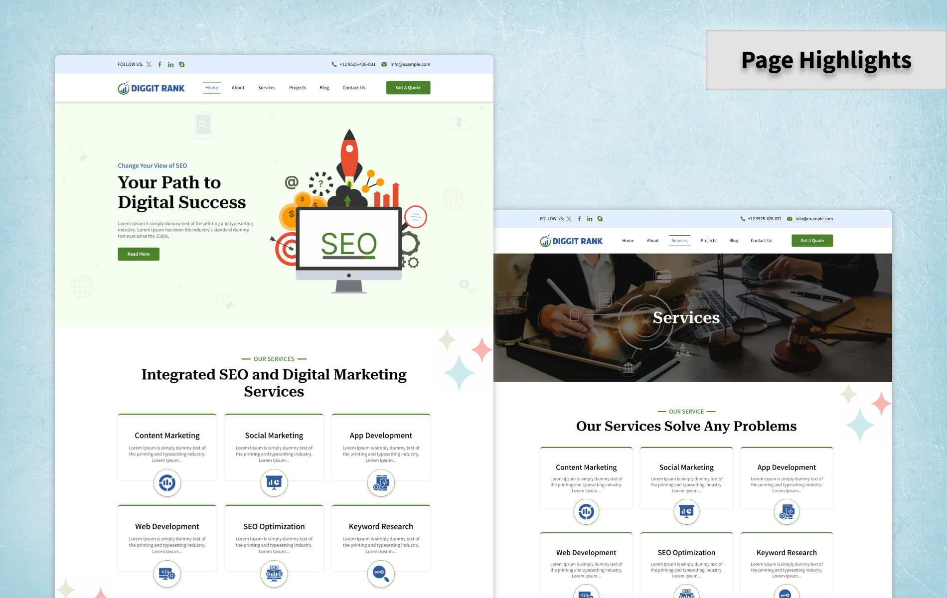 More than a template, Diggitrank is a symphony of functionality and design, curated for SEO and digital marketing aficionados. It's not about the pro version – it's about unleashing your agency's potential. Make the smart choice, choose Diggitrank, and redefine your digital narrative today!