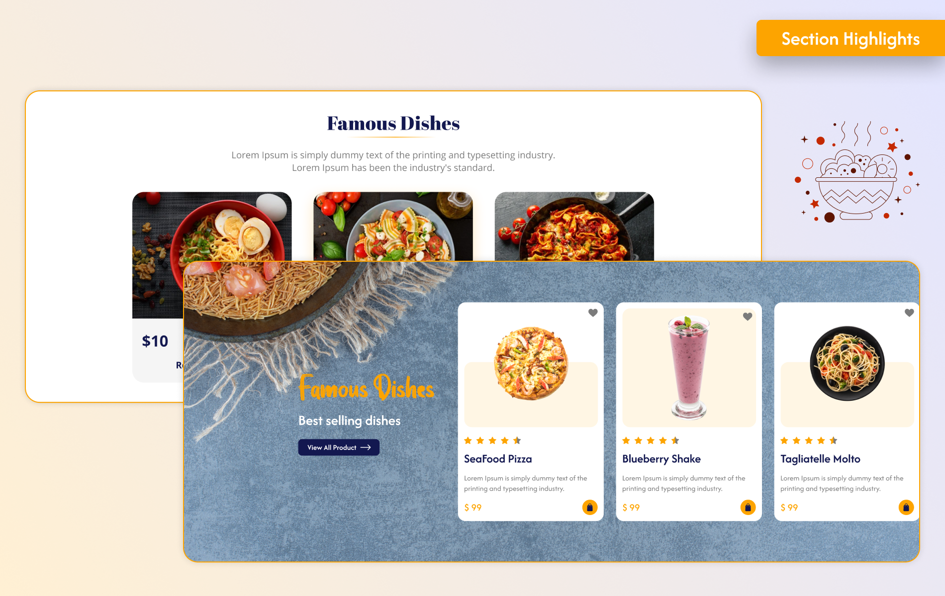 Dineclub isn't just a landing page; it's a visual banquet for your visitors. Tailored sections strategically showcase your restaurant's signature dishes, ambiance, and special offerings. Each element is meticulously designed to whet the appetite and create an irresistible invitation for patrons to savor what your establishment has to offer.