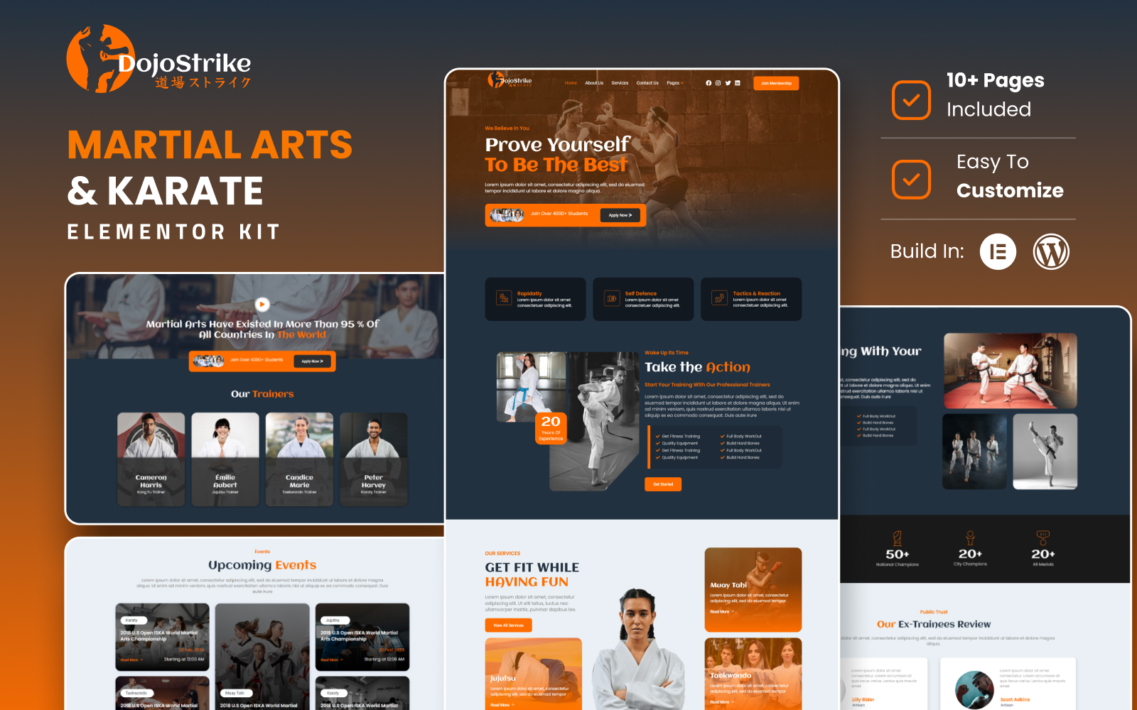 Elevate your Martial Arts training club's online presence with "DojoStrike," a dynamic Elementor template kit meticulously crafted to empower your website with professionalism, style, and functionality. Ideal for dojos, academies, gyms, and martial arts training centers, this kit offers a comprehensive range of templates and components designed to engage, inspire, and convert your visitors.