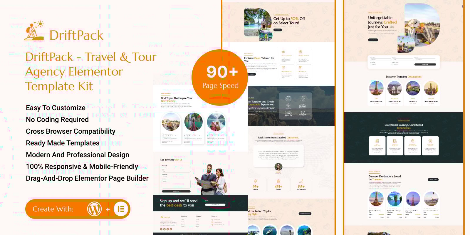 Driftpack - Travel & Tour Agency Elementor Template Kit Elementor Kit