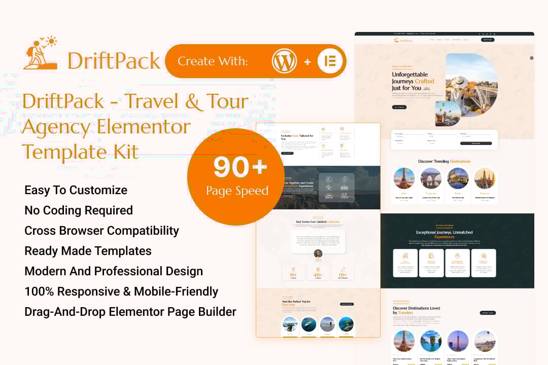 Driftpack - Travel & Tour Agency Elementor Template Kit Elementor Kit