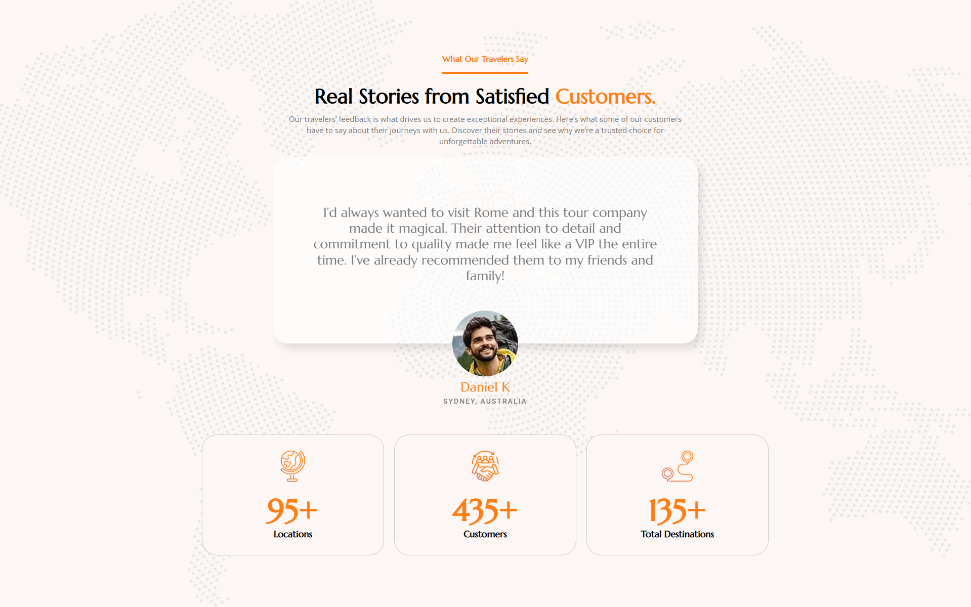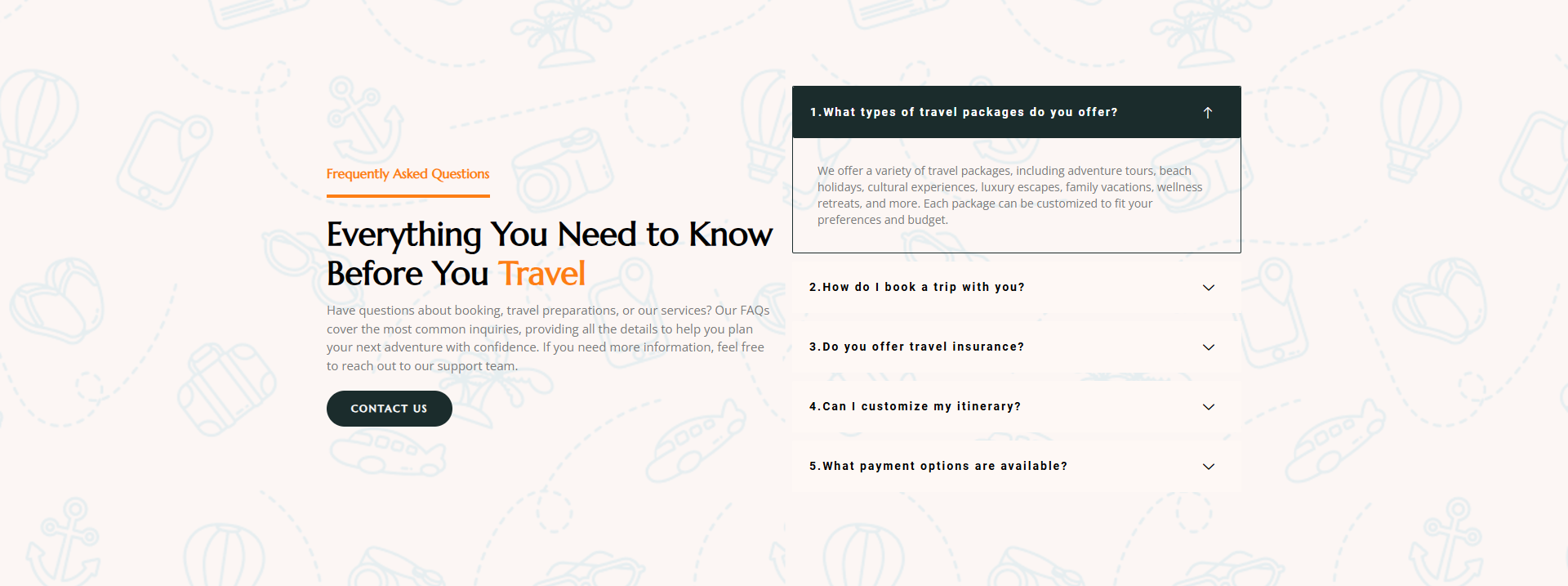 - Sleek and Modern Design: Tailored for travel and tour businesses, offering a clean and visually appealing layout.