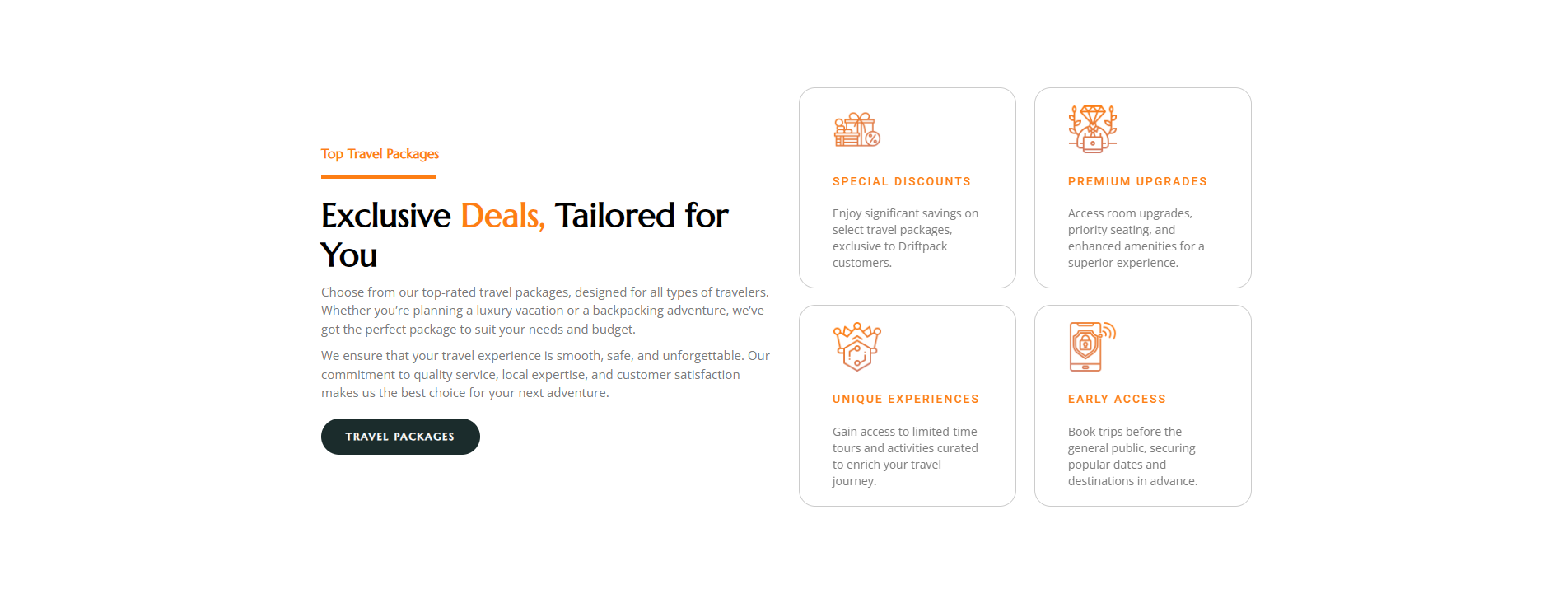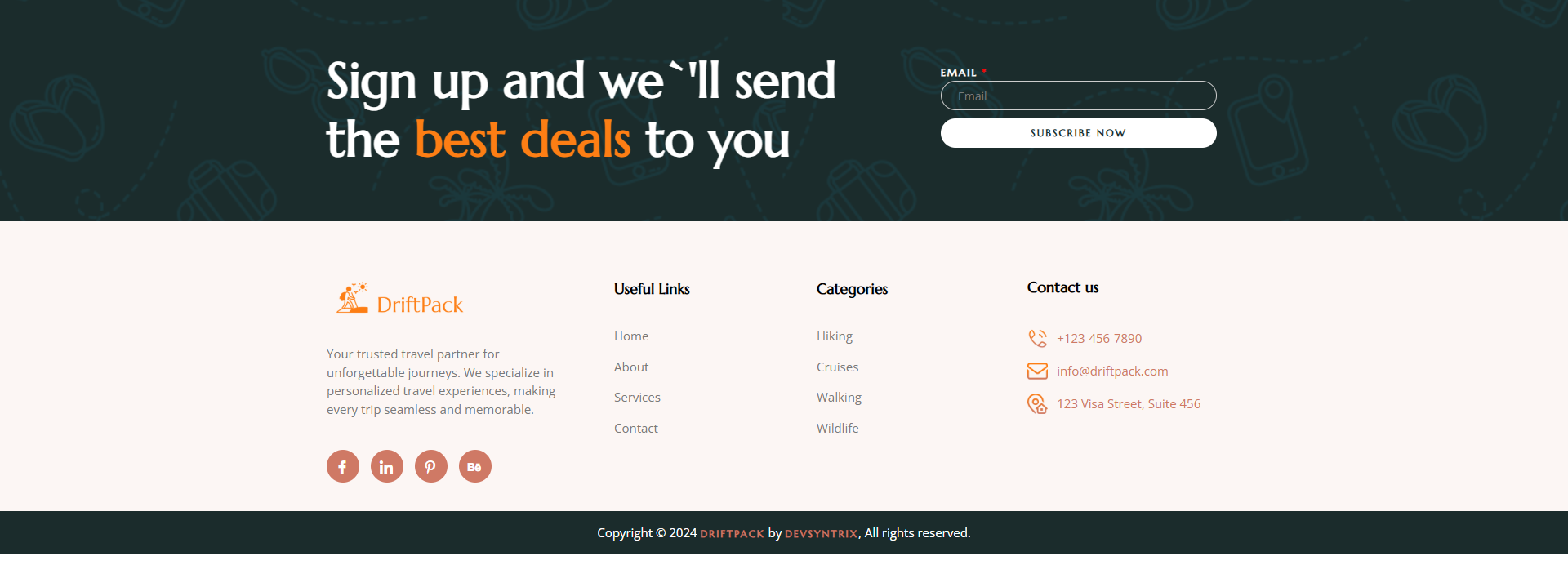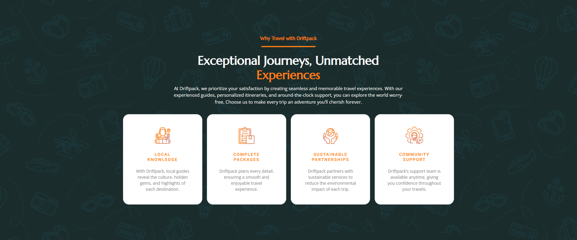 DriftPack is an Elementor Template Kit specifically crafted for travel and tour services. With its sleek, modern design and user-friendly layout, this kit is perfect for creating stunning websites for travel agencies and destination services—all without needing Elementor Pro or any coding skills.