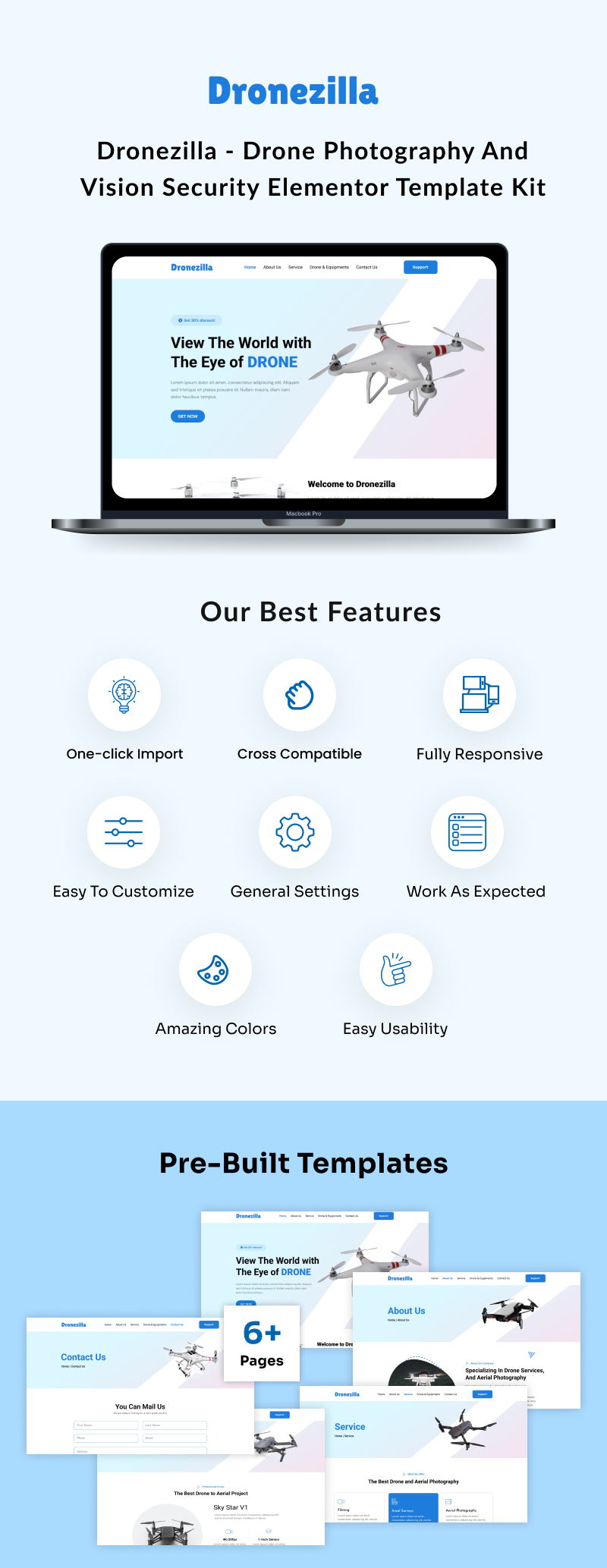 Dronezilla - Drone Photography and Vision Security Elementor Template Kit Elementor Kit
