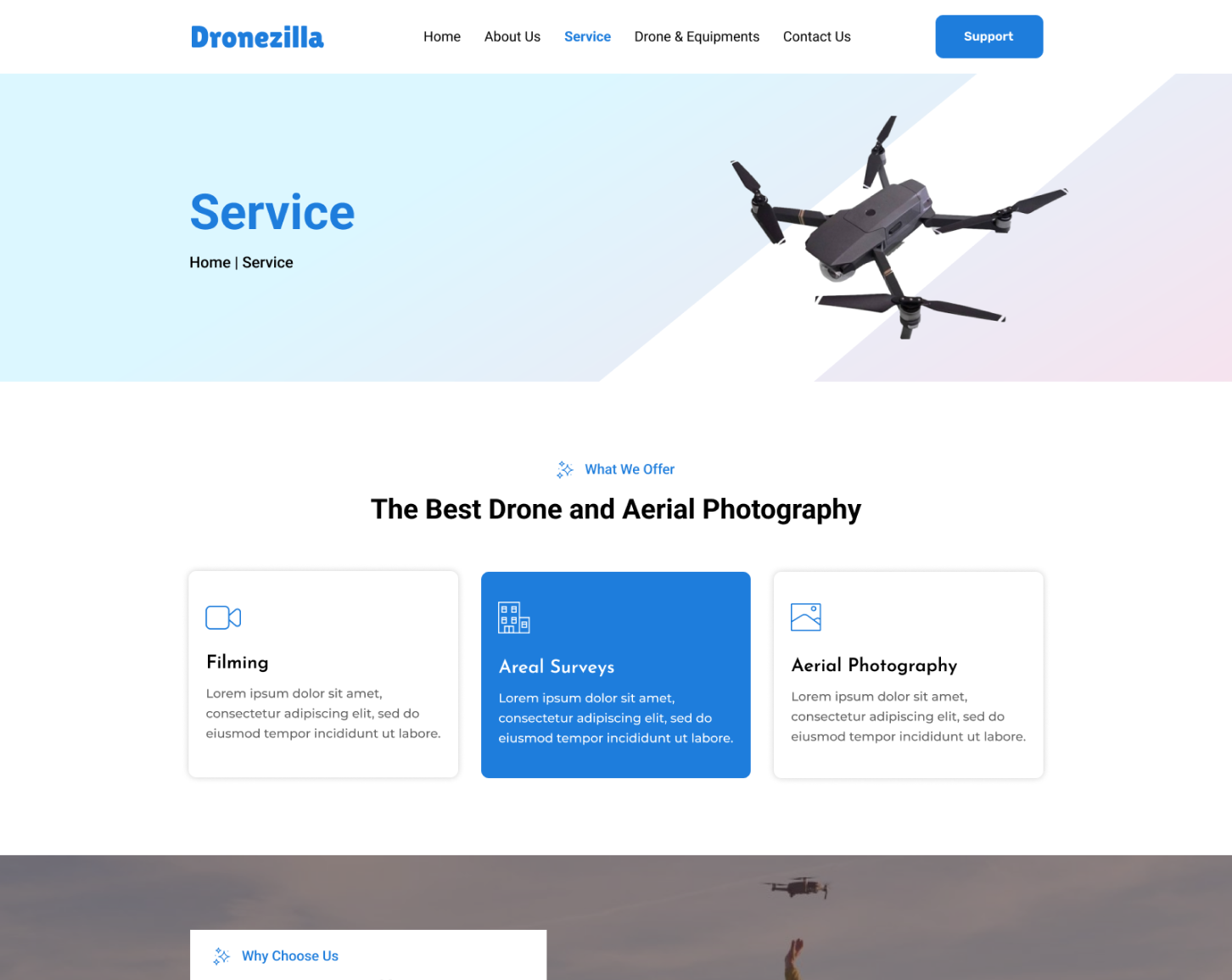 Dronezilla - Drone Photography and Vision Security Elementor Template Kit - Designed specifically for drone photography services, vision security providers, and aerial videography businesses, this Elementor Template Kit offers a clean, modern, and fully responsive design. The template includes sections for pricing plans, service descriptions, and a contact form to help you convert visitors into clients.