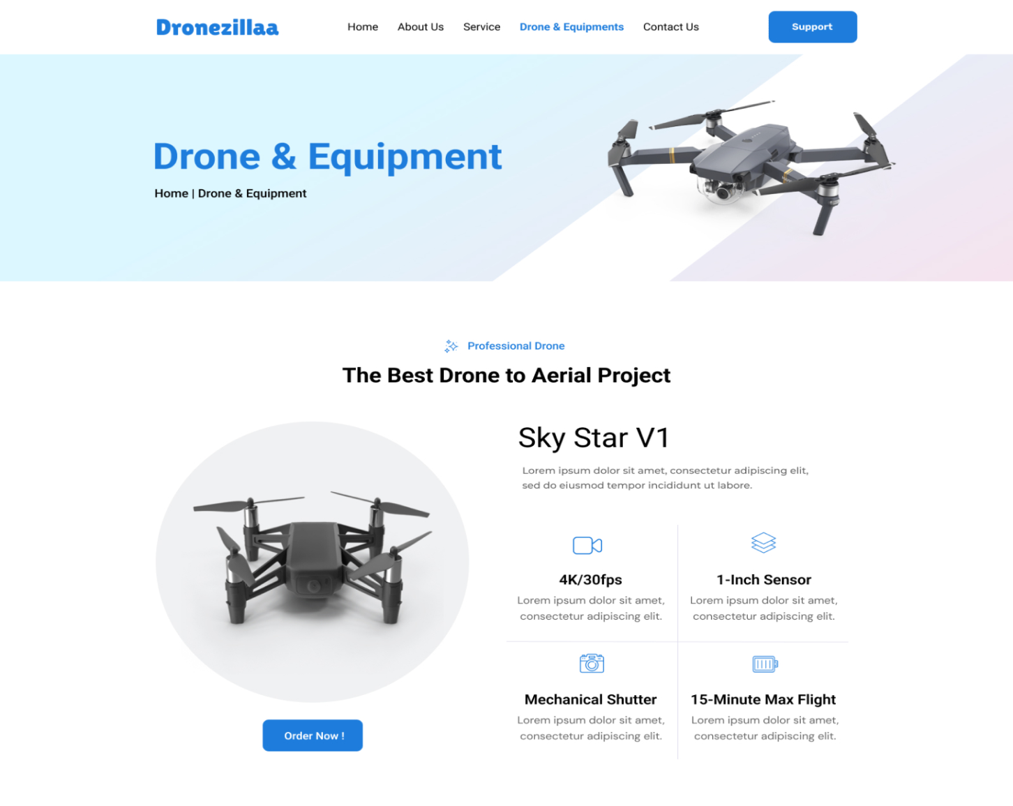 Built to showcase drone products, services, and stunning aerial visuals, this template features sections for service descriptions, portfolio galleries, client testimonials, pricing plans, and contact information. Easy customization options allow you to adjust the layout, colors, and content to match your brand’s identity.
