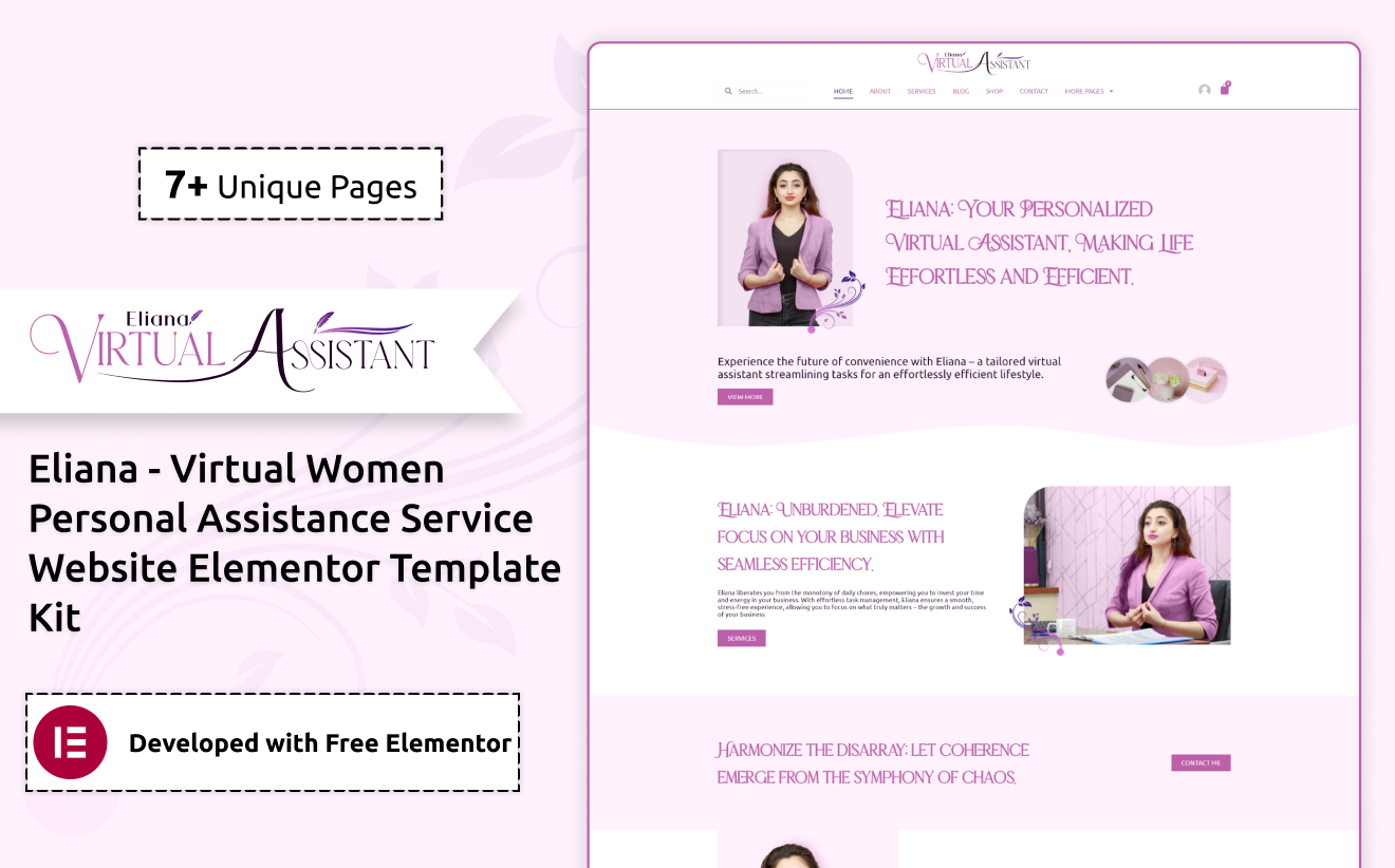 Eliana Women Virtual Assistance WordPress Elementor Template Kit Elementor Kit