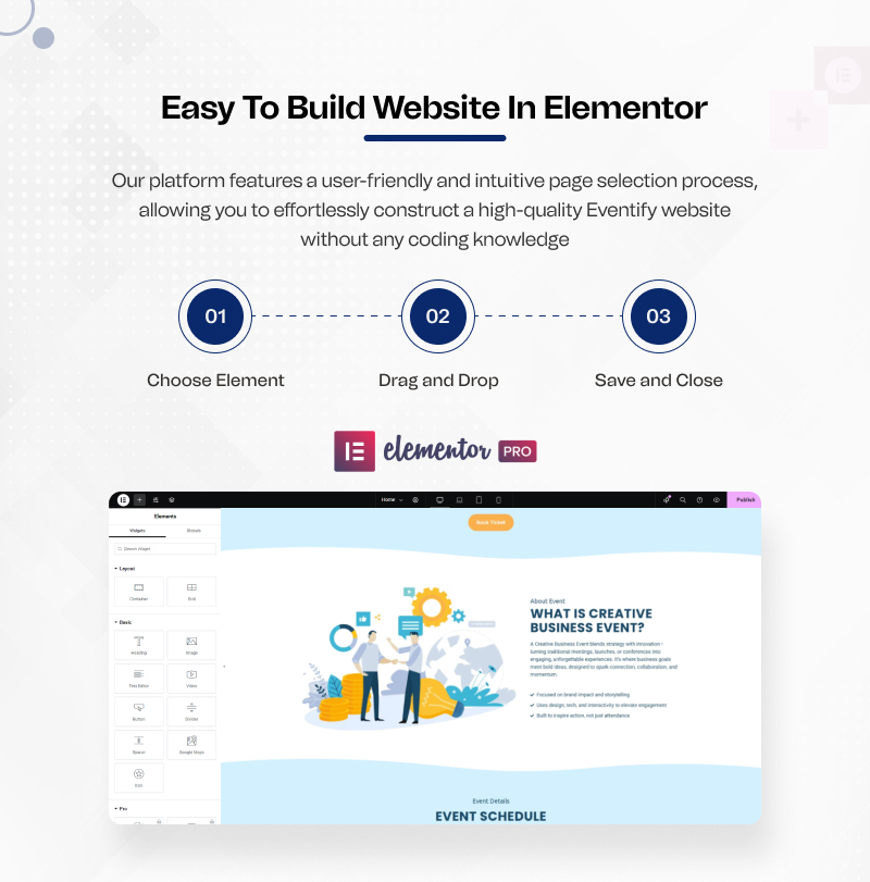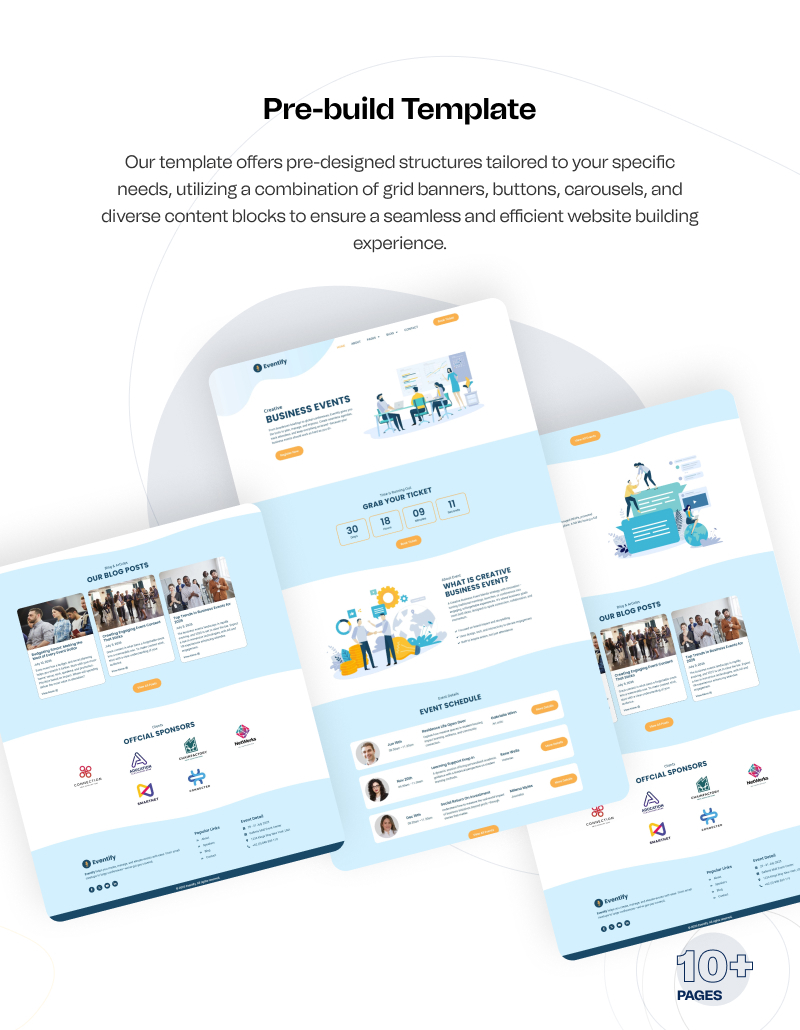 Eventify is a sleek and responsive WordPress Elementor Template Kit built for showcasing events of all types — from business conferences and creative workshops to festivals and community meetups. Designed for ease of use, this kit comes with fully customizable pages that require no coding, making it perfect for both beginners and professionals.
