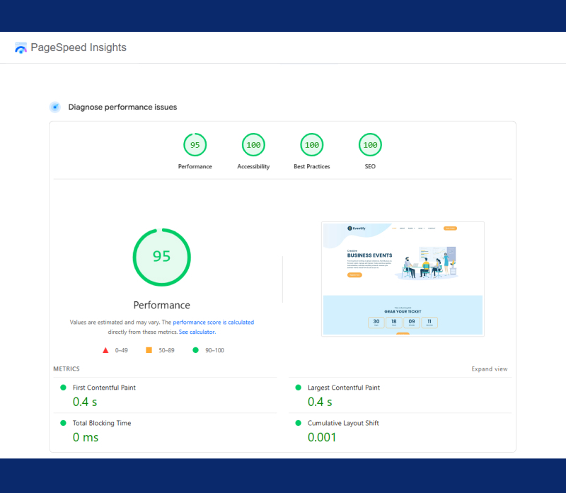 With Elementor’s drag-and-drop functionality, you can effortlessly highlight event speakers, schedules, locations, ticketing info, and more. Ideal for temporary content previews, this layout gives you a complete idea of how a real event site would look — ready to be replaced with your own final details later..