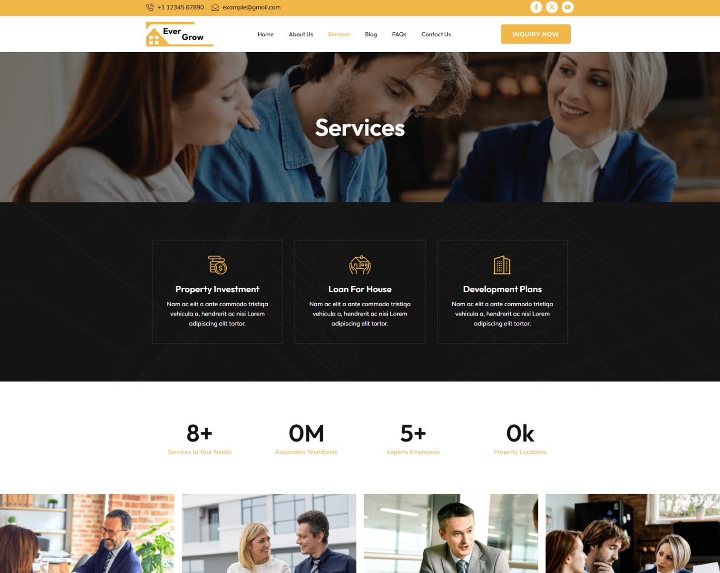 Ever Grow - Real Estate Advisor Elementor Template Kit, a visually exceptional website for the real estate advisor or Business consulting. In this powerful template kit with a beautiful homepage, you get more than eight inner pages. Every Grow is built with the Elementor free plugin, so no need to purchase any kind of premium plugin to set up this template kit. To customize ever ever-growing template kit, you don't have to need any knowledge about kind of coding.