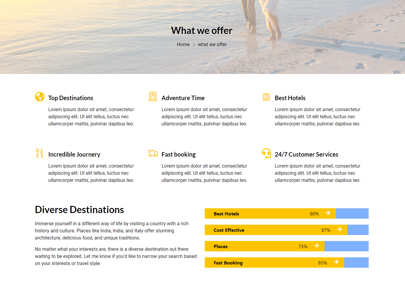 To help you build a travel & tour agency website quickly and easily, we have created this beautiful demos so you can import and use them right now with one single click with optimized design and SEO Performance , friendly-mobile for search engine and responsive design for all screen sizes of devices(Mobile,Tablets, PCs).