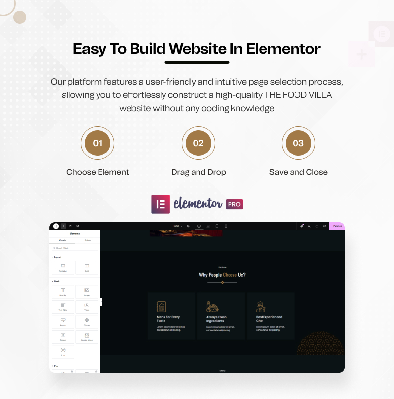 Foodvilla is a modern and fully responsive Restaurant Services WordPress Elementor Template Kit, designed for restaurants, cafes, food delivery services, and culinary businesses. It allows you to showcase menus, reservation options, chef profiles, events, galleries, and blog posts in a clean and visually appealing layout.
