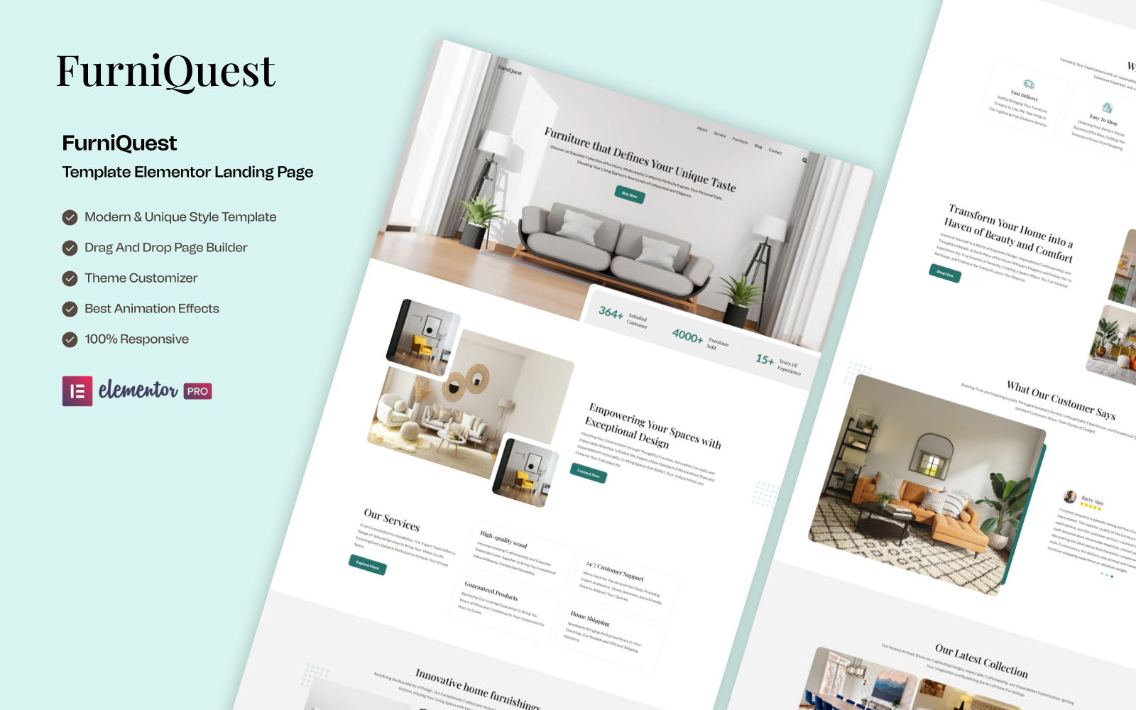FurniQuest - Furniture Services Elementor Landing Page Elementor Kit
