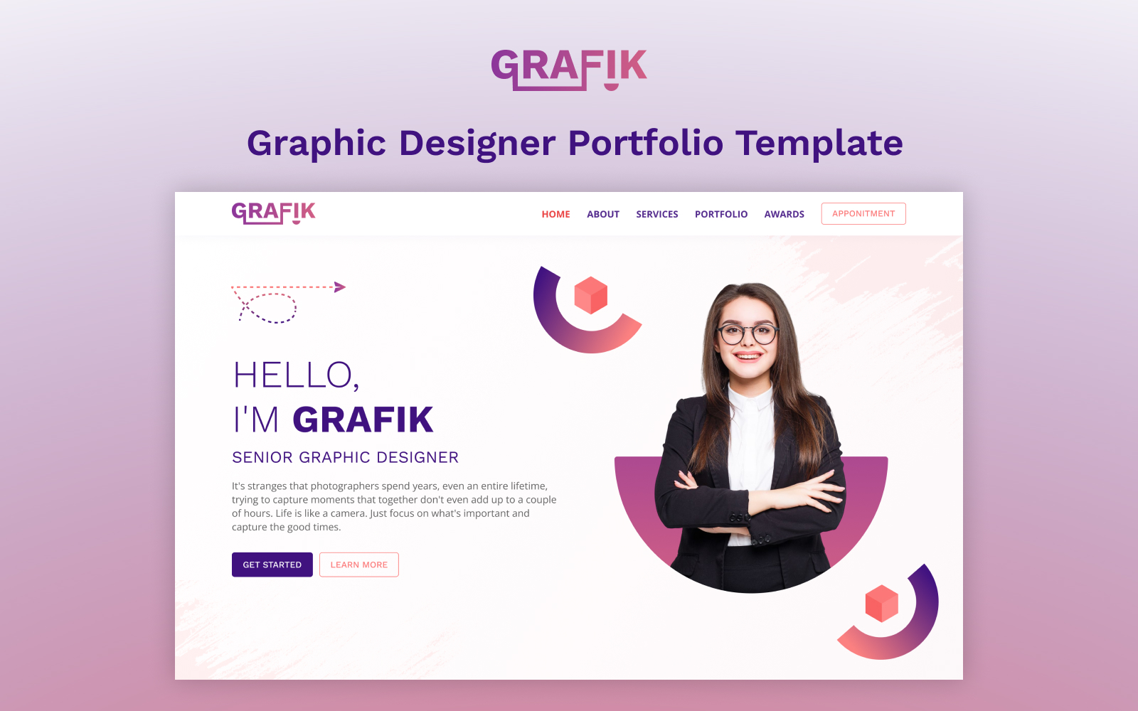 Grafik is a sleek, modern, and fully responsive one-page portfolio template designed for graphic designers. It's built with Elementor, the world's leading drag-and-drop page builder. Our Grafik is perfect for graphic designers, creative professionals, and agencies. This template allows you to showcase your work in a clean, visually captivating layout that reflects your design aesthetics.