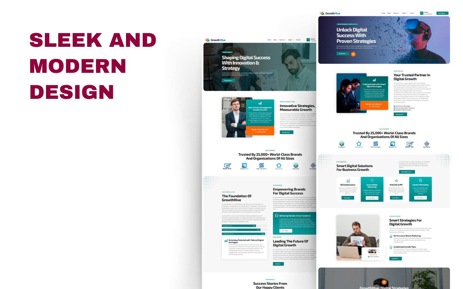 With its drag-and-drop functionality, you can easily customize every element to fit your brand’s identity. The responsive design ensures seamless browsing on desktops, tablets, and mobile devices, while its SEO-friendly structure helps boost your visibility online. Whether you're offering social media marketing, PPC campaigns, content creation, or web development, Growth Hive provides the perfect digital storefront to attract and convert leads.