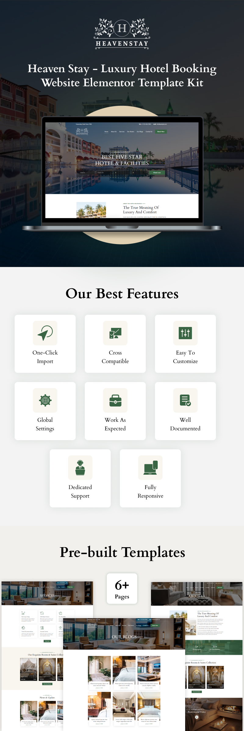 Heaven Stay - Luxury Hotel Booking Website Elementor Template Kit Elementor Kit