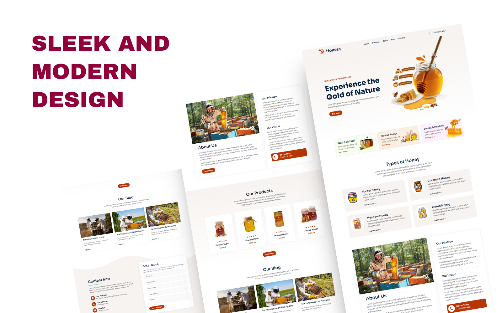 - Product Showcase: Highlight your honey products and beekeeping services with attractive galleries and detailed descriptions.
