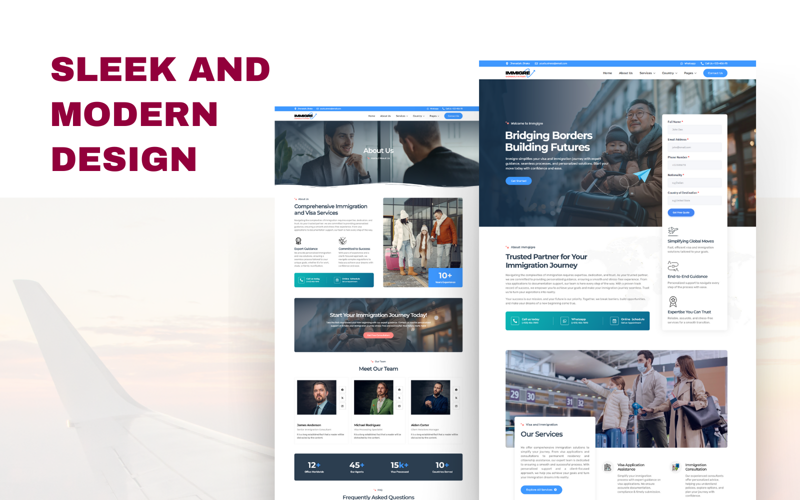 - Service-Oriented Layouts: Showcase immigration and visa services, eligibility criteria, and pricing packages with ease.