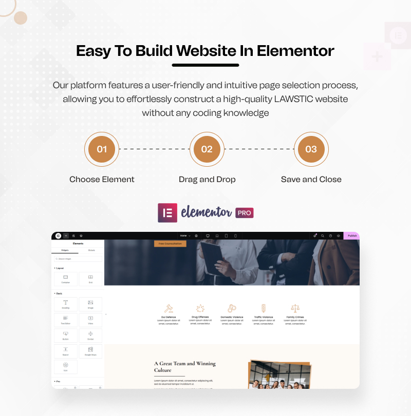 Lawstic is a professional, clean, and fully responsive WordPress Elementor Template Kit designed for law firms, attorneys, legal consultants, and CA services. It features modern layouts, multiple pre-designed pages, and a fully customizable design to showcase your services, case studies, attorneys, and blogs.