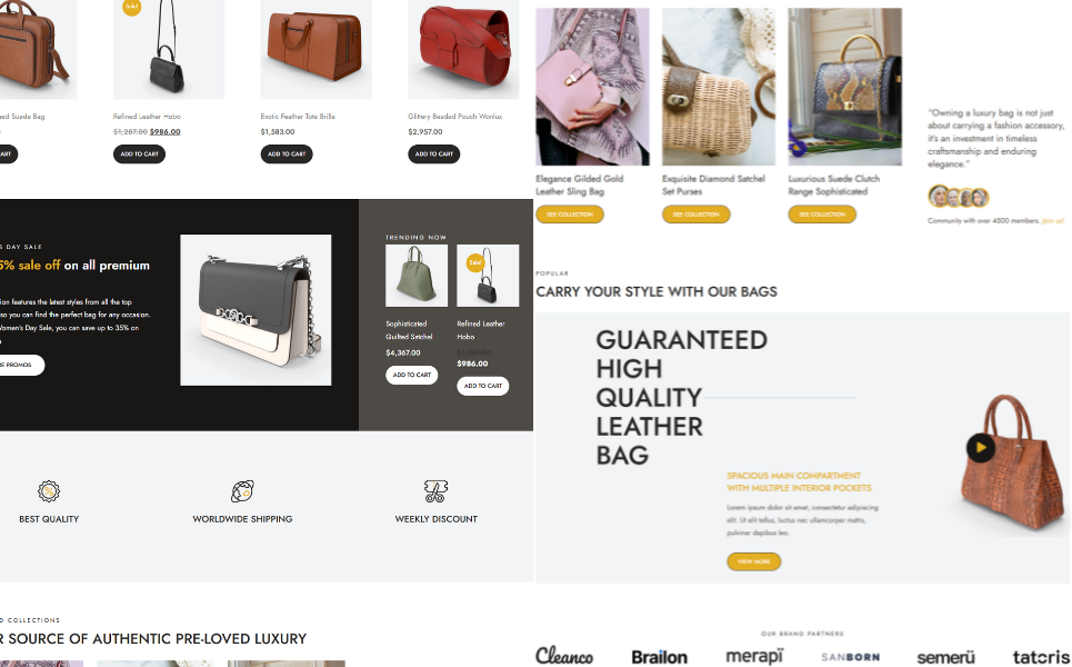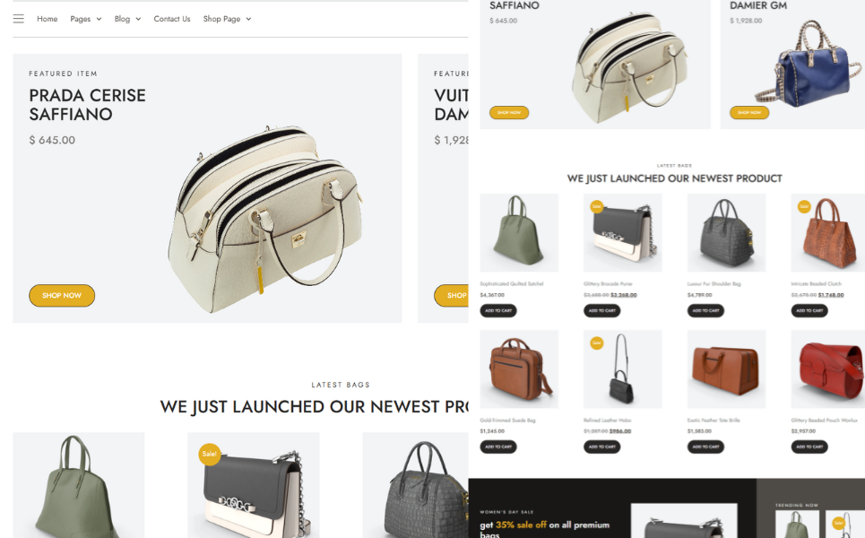 With WooCommerce integration, you can set up a professional online store to sell handbags, fashion items, or accessories with secure checkout and product filtering. Perfect for boutique owners, fashion brands, and entrepreneurs who want a high-end digital presence.