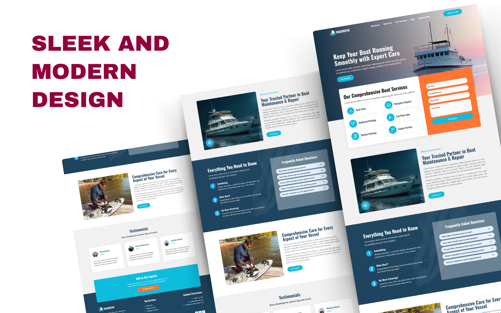 Marinevo features a clean and modern design, making it easy to showcase your repair services, display customer testimonials, and highlight your expertise in boat maintenance. This template is perfect for attracting new clients and enhancing your marine service business’s visibility online.