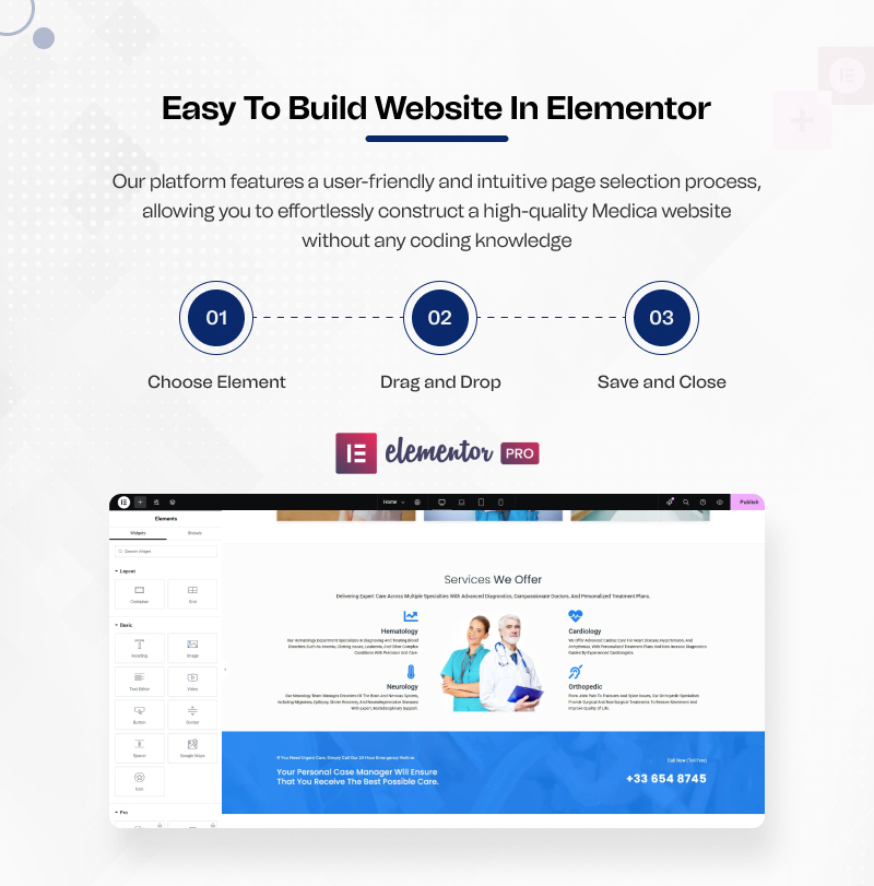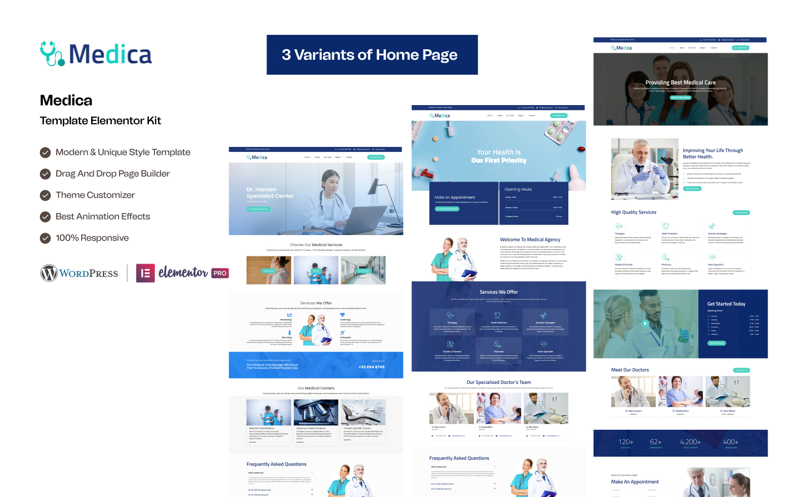 This kit comes with 3 homepage layouts, multiple essential inner pages, and beautifully crafted blocks tailored to healthcare services. With Elementor and Elementor Pro, you can customize every section to match your brand effortlessly.