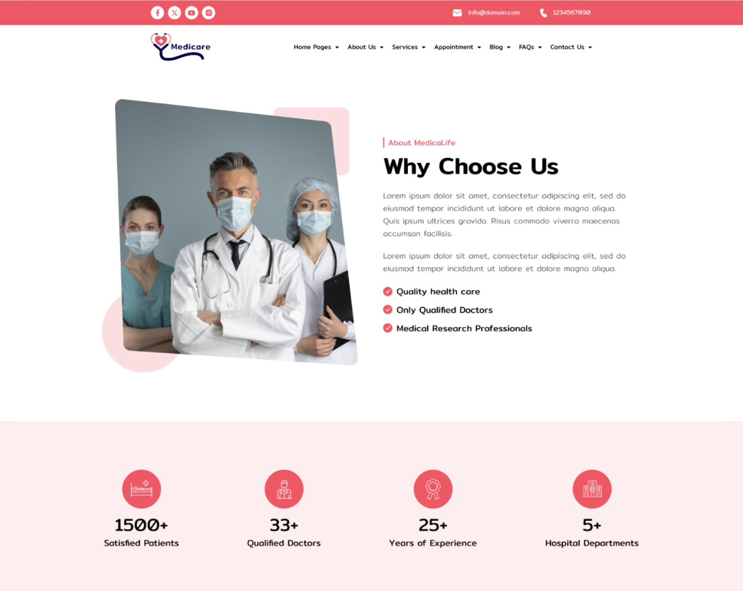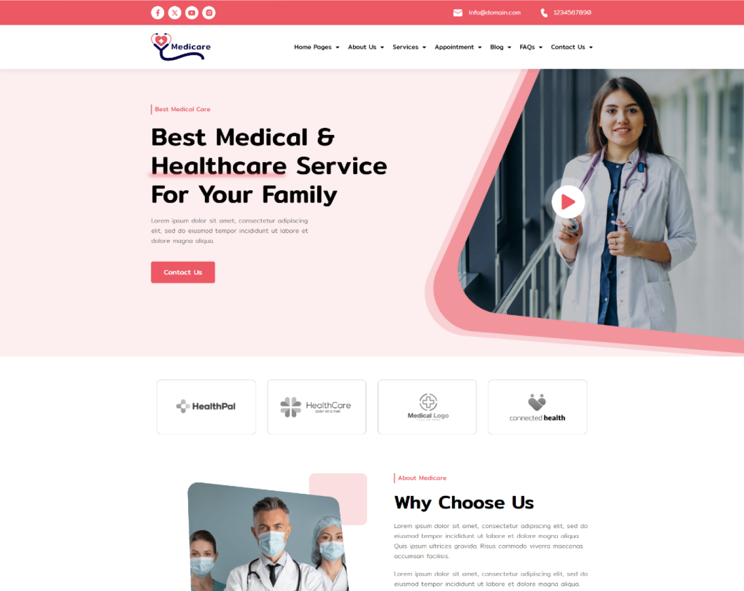 - 4 Homepage Layouts: Multiple variations to choose from, catering to various clinic or hospital needs.