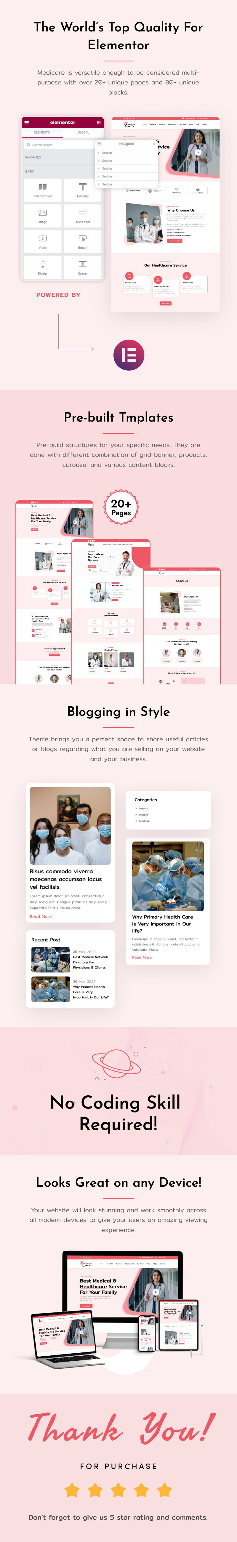 - Built with Elementor: Fully compatible with the Elementor drag-and-drop editor for easy, no-code customization.