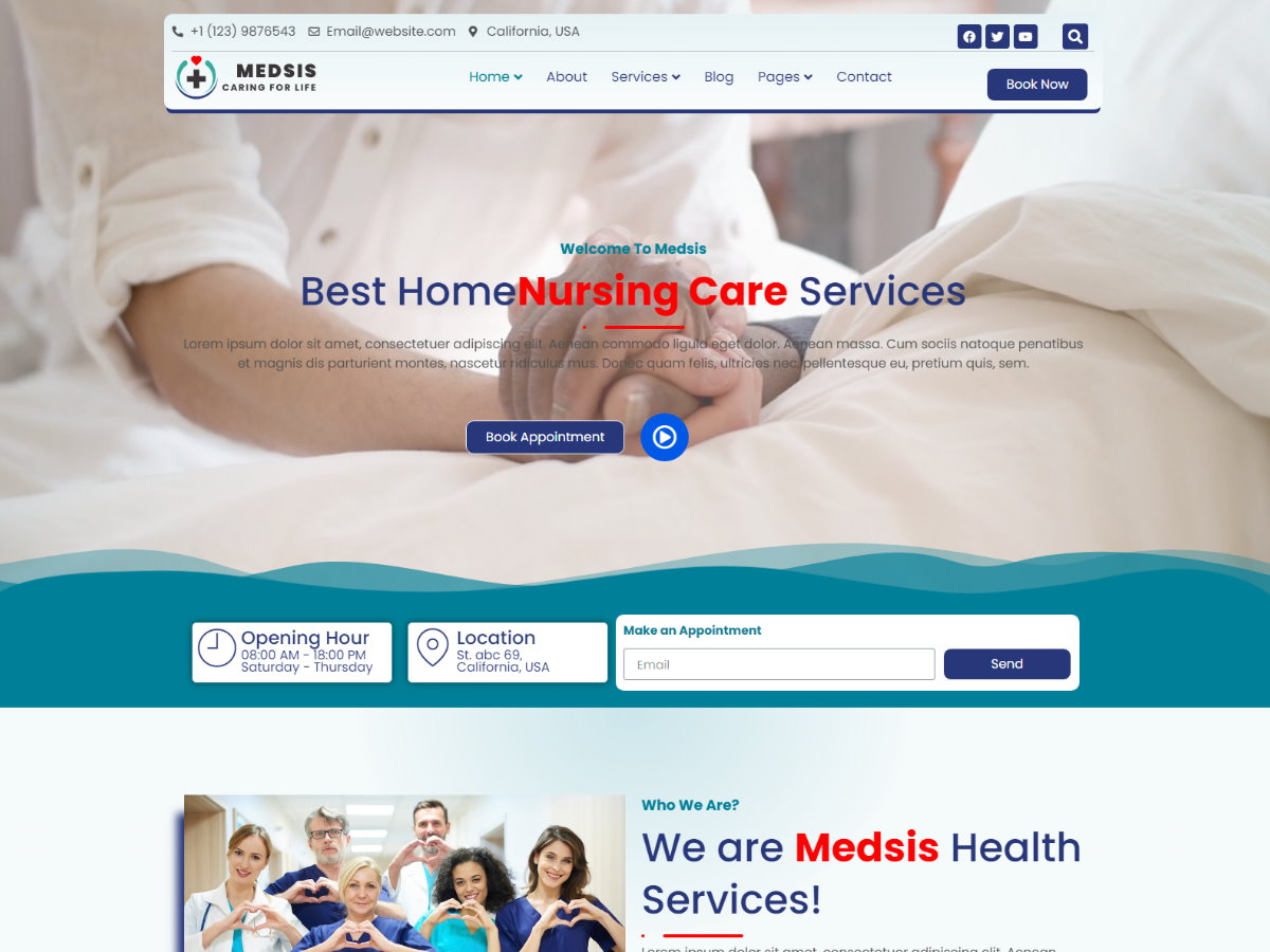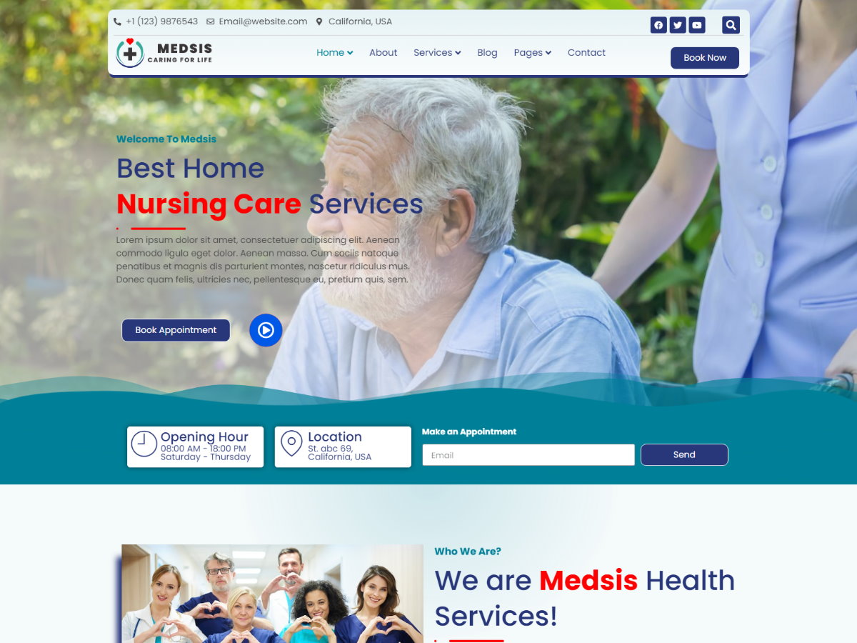 MEDSIS - A cutting-edge and sleek Elementor Template Kit designed for Nursing, Medical, and Healthcare Services.