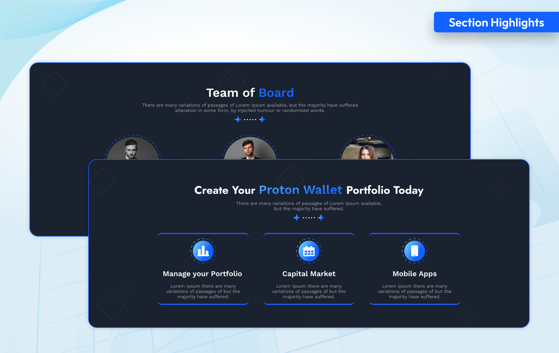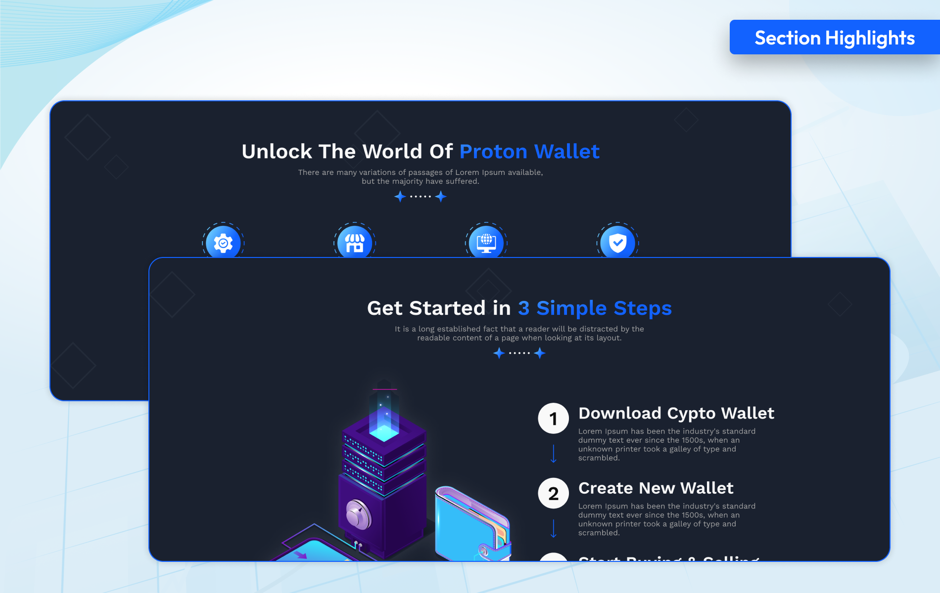 Proton is more than a template; it's a showcase of your crypto wallet's unparalleled features. From multi-currency support and two-factor authentication to seamless transactions and real-time market data, each section is meticulously crafted to inform and captivate potential users. Present your wallet as the epitome of convenience and security.
