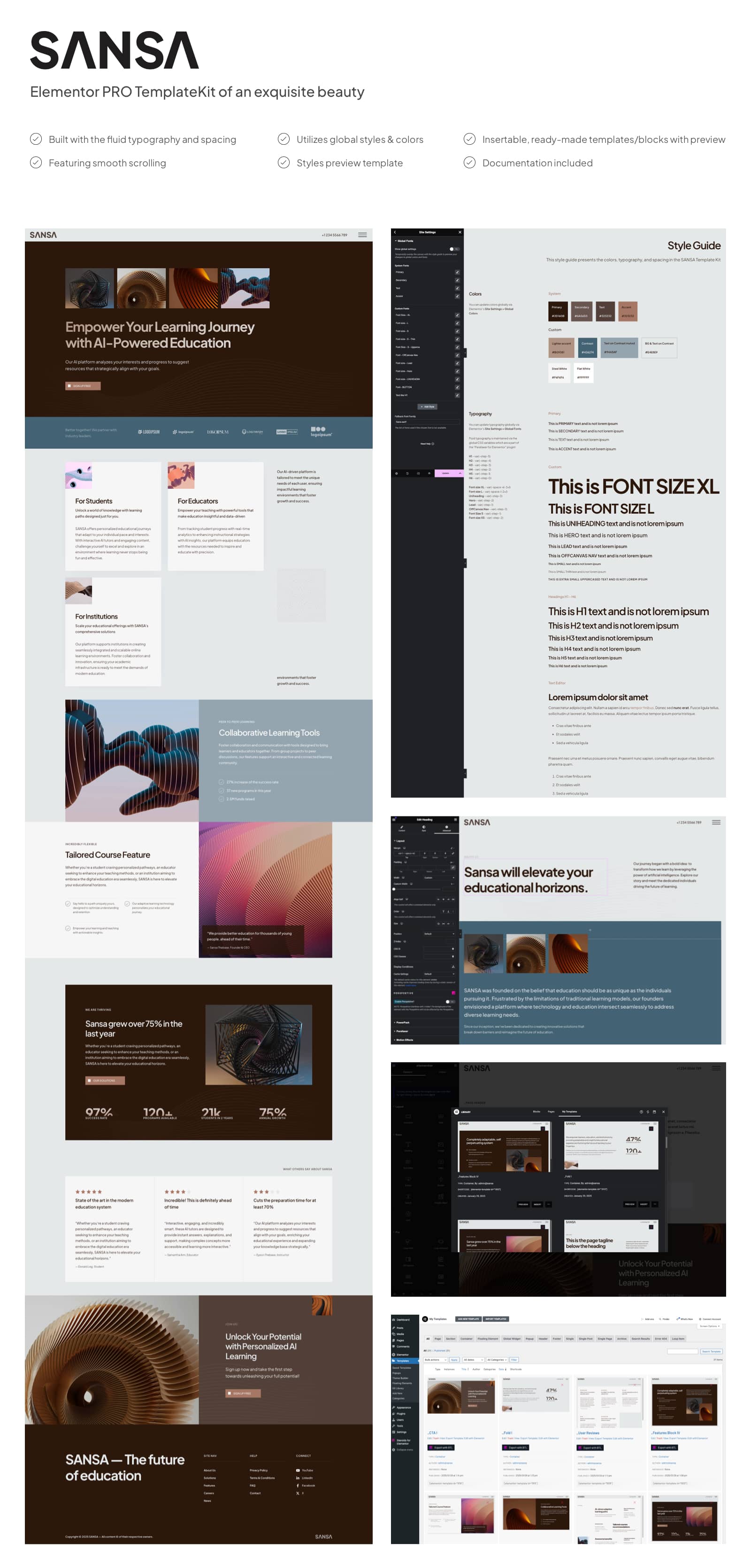 Introducing SANSA, a versatile Elementor Template Kit crafted for modern startups, AI ventures, and dynamic agencies. Designed with flexibility in mind, SANSA caters to a variety of business needs, whether you're launching a groundbreaking AI startup, establishing a forward-thinking agency, or any innovative enterprise. This template kit includes a curated collection of templates perfect for showcasing your services, team, and features, and is easy to tailor to your unique vision.