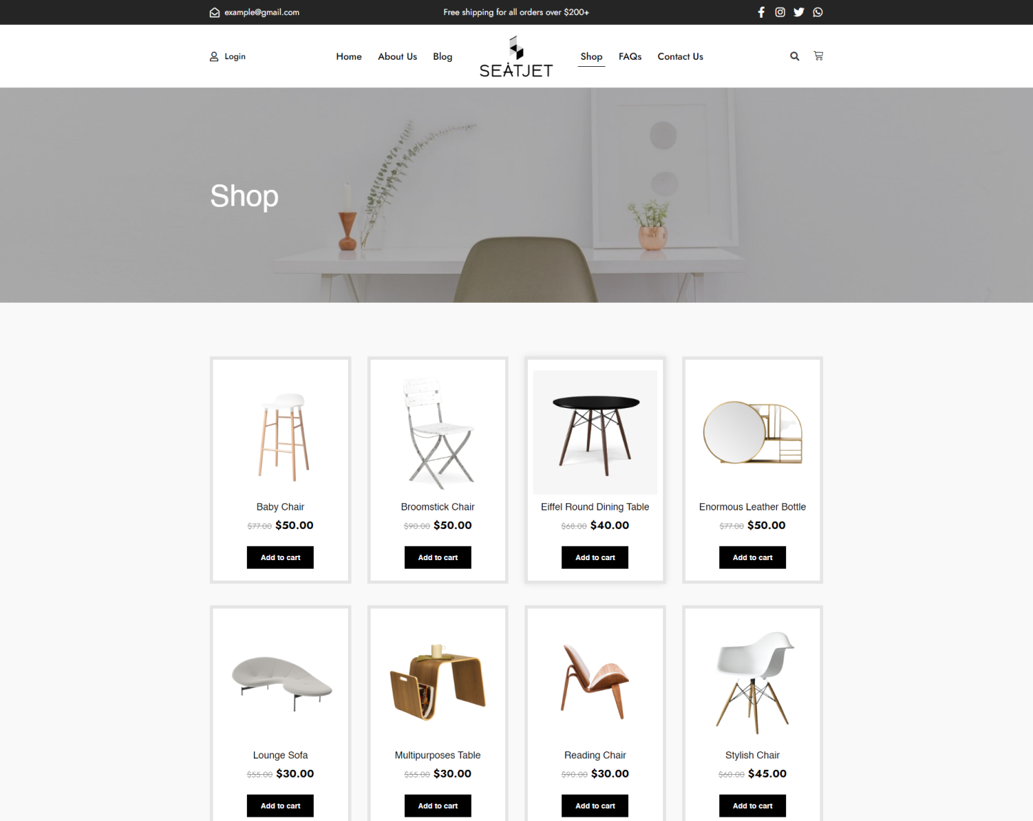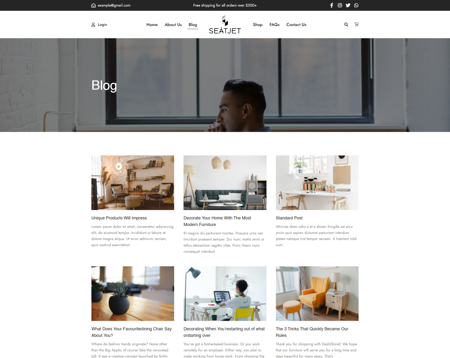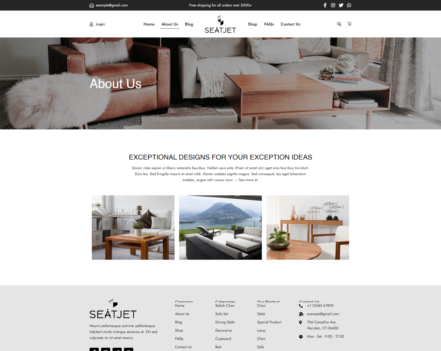 SeatJet - Furniture Store Elementor Template Kit is one of the best and unique concept design for furniture store companies. In this kit you get every WooCommerce page design with beautiful homepage with free stock furniture images. Also add blog archive and blog single page with 15+ page design. Everything in this design you can edit just with single click.