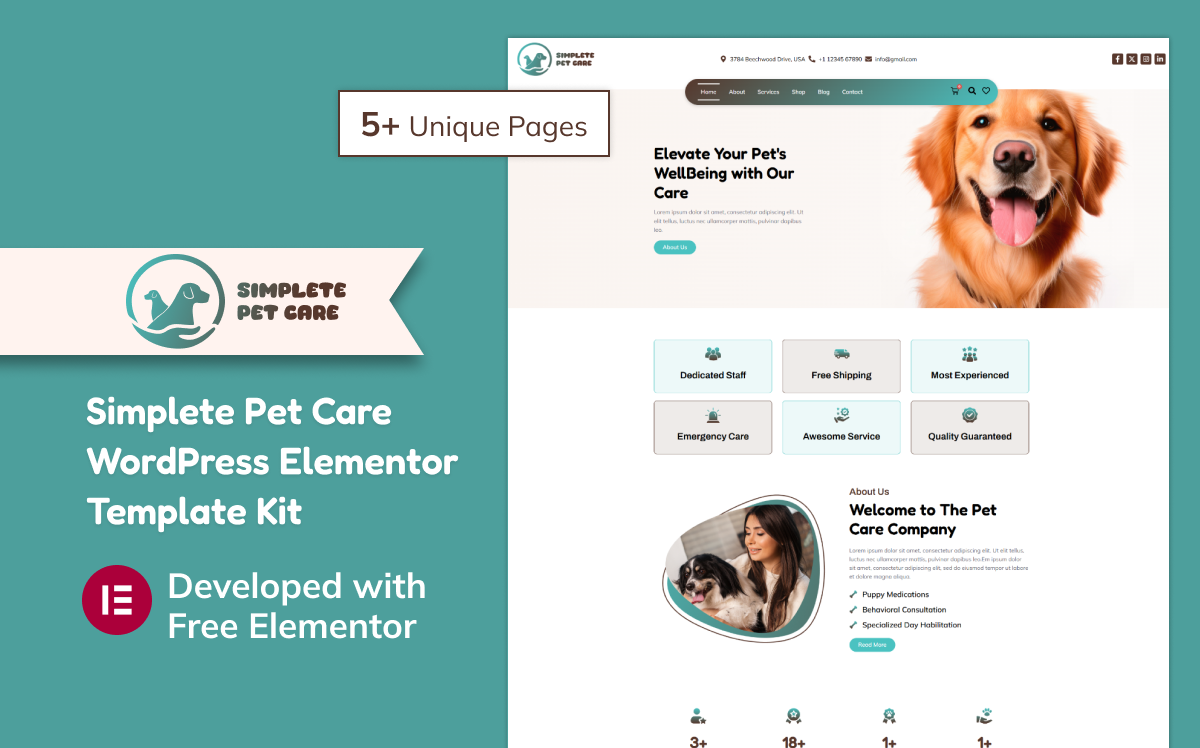 Here are some key features of the Simplete Pet Care WordPress Elementor Template Kit: