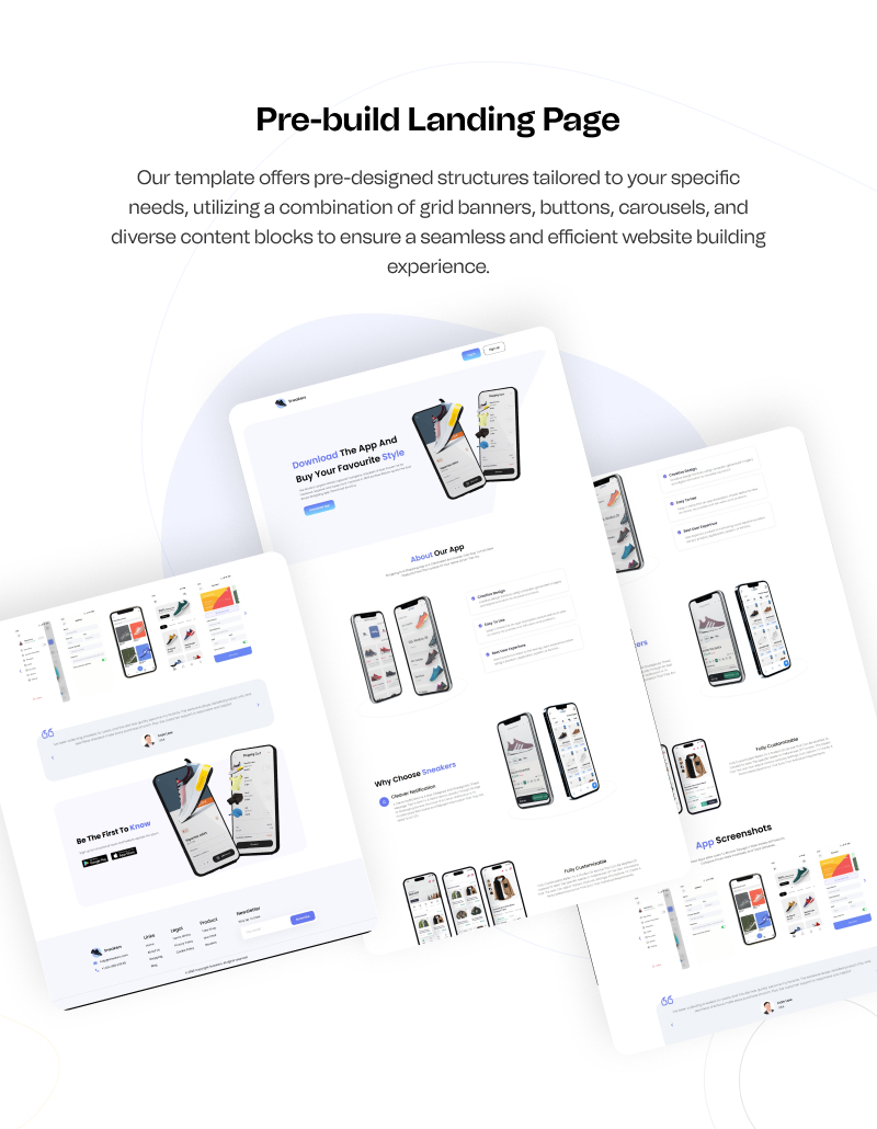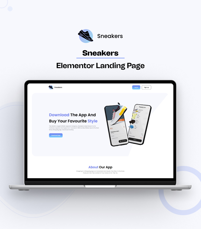 Sneakers App - App landing page Elementor Landing page Template Elementor Kit