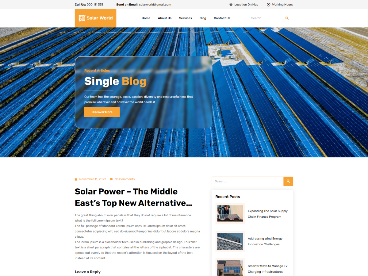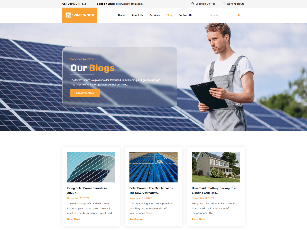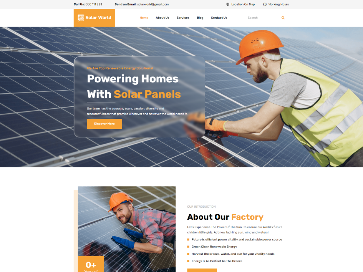 Solar World is a Renewable Green Energy Elementor Template Kit for developers, designers, freelancers, etc., where they can quickly design WordPress and Elementor sites that appeal to a modern, creative design. This elementor kit is designed from scratch to deliver a one-stop solution for renewable industries like solar energy, green energy, wind turbine, bioenergy, marine energy, wave energy, tidal energy, etc.